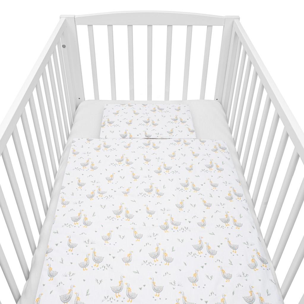 The New Baby Goose-piece crib set. The set is made of 100% cotton. It includes a pillowcase approx. 40x60 cm + duvet cover approx. 120x90 cm. The material is 100% cotton.