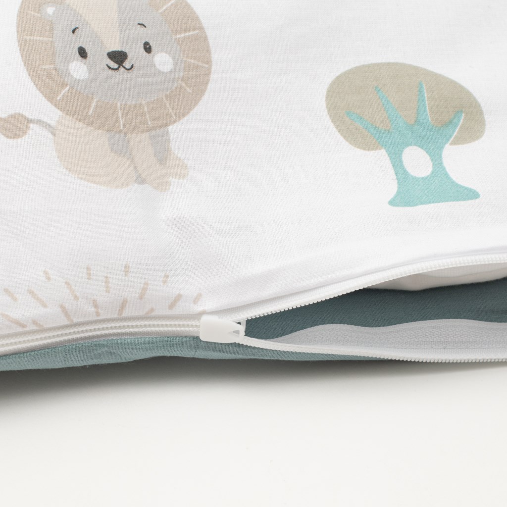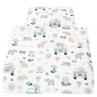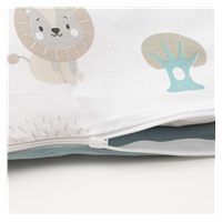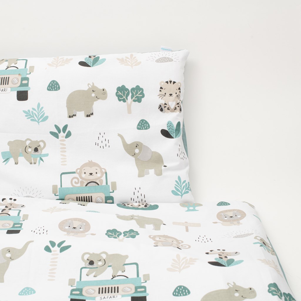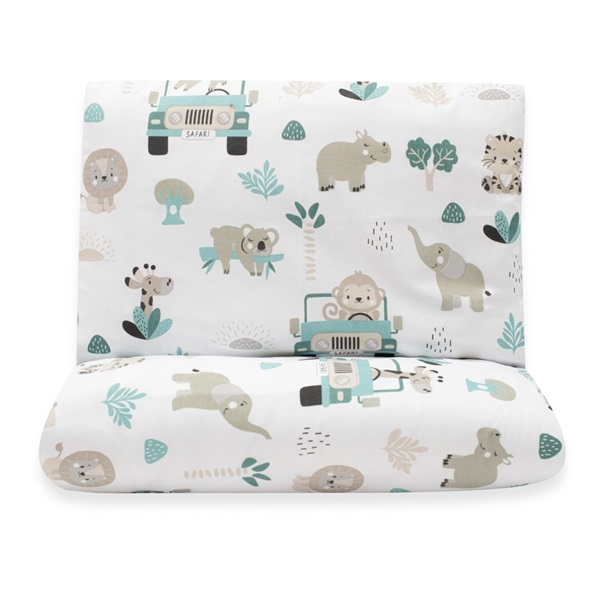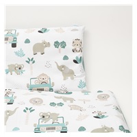 The New Baby Safari 2-piece crib set. The set is made of 100% cotton. It includes a pillowcase approx. 40x60 cm + duvet cover approx. 120x90 cm. The material is 100% cotton.