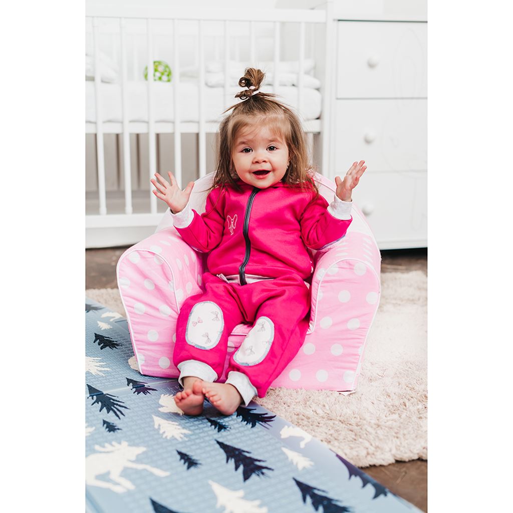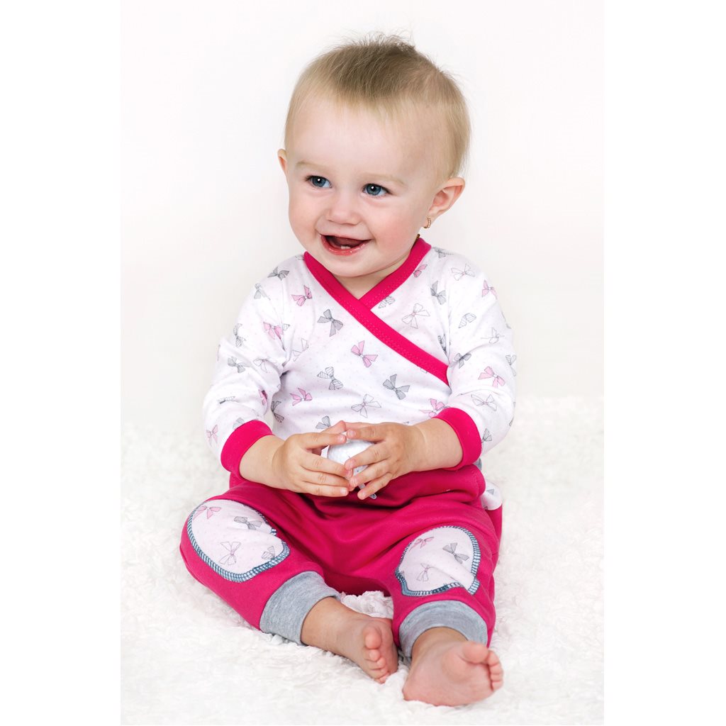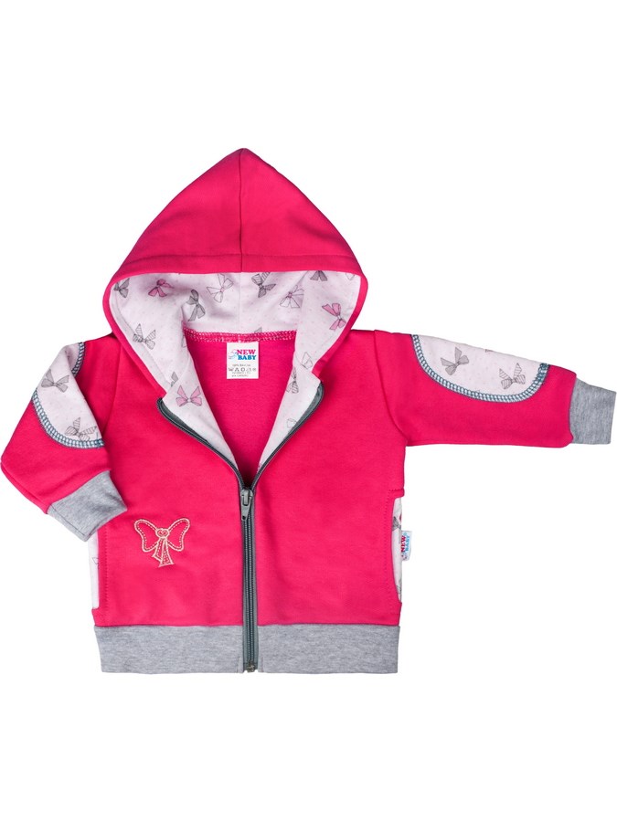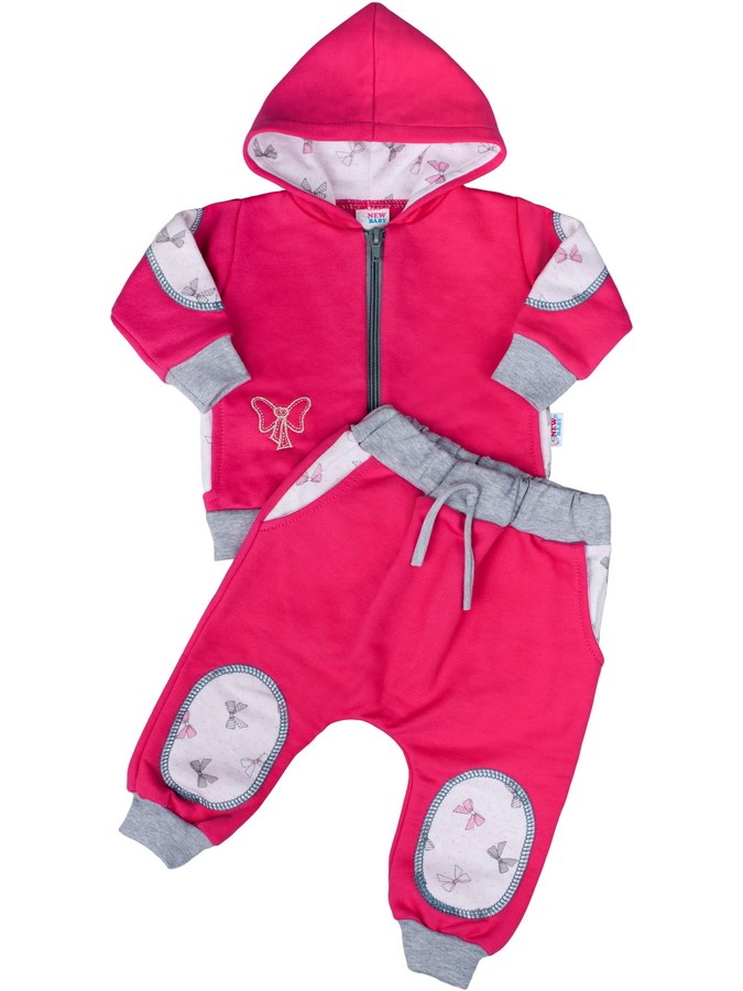 Beautiful 2 piece baby set New Baby Pansy. The set includes sweatpants and a sweatshirt. The sweatshirt is decorated with a beautiful picture of a bow, has a full-length zipper, deeper pockets on the sides, wide elastic waistband and sleeves. The sweatshirt has a handy hood which is lined with a cotton lining that is all-over printed with bows. The elbows of the sweatshirt are decorated with cute patches. The sweatpants have an elasticated waistband and deep pockets for treasures. The knees are decorated with cute patches. You can use the set perfectly not only in the stroller, car seat, but also for walks or as comfortable clothes for home. It has versatile use. You can use the sweatshirt in colder days instead of a jacket or sweater. Sweatpants can replace trousers or jeans. The set is made of very nice and soft material, in which your baby will feel very comfortable. Sweatshirt dimensions: circumference around the chest approx. 50 cm, sleeve length approx. 19 cm, total length approx. 27 cm. Sweatpants: waist circumference approx. 36 cm, length from crotch approx. 17 cm, total length approx. 36 cm. 100% cotton.