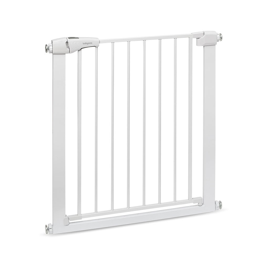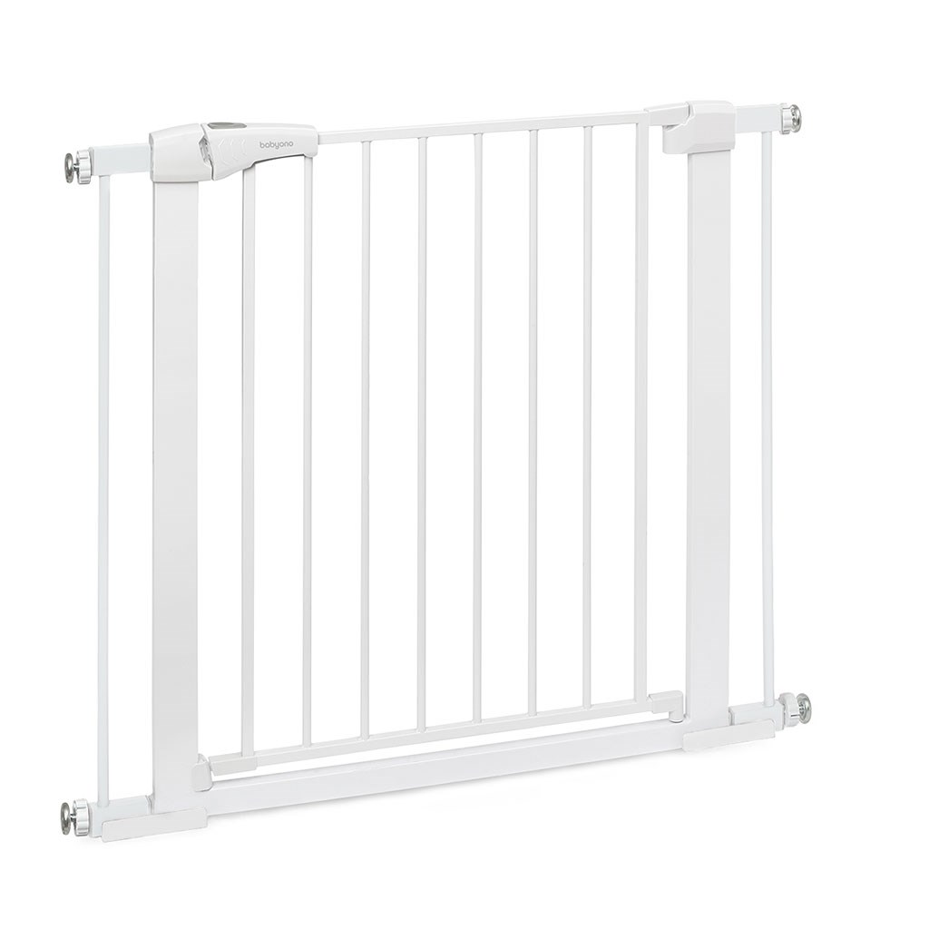 It can only be attached with struts, so it does not damage door frames or staircase elements, without the need for drilling. Thanks to silicone pads, it leaves no marks on the support points. Universal dimensions and an additional extension allow installation in aisles from 75 cm to 96 cm. The safety-enhancing double locking system allows the gate to be opened by an adult with one hand while effectively blocking access by a child. The product complies with EN 1930, please read the instructions before installation.