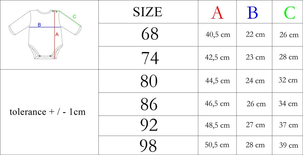 | Baby bodysuit | With long sleeves | Velikost | 74 (6-9m) |
