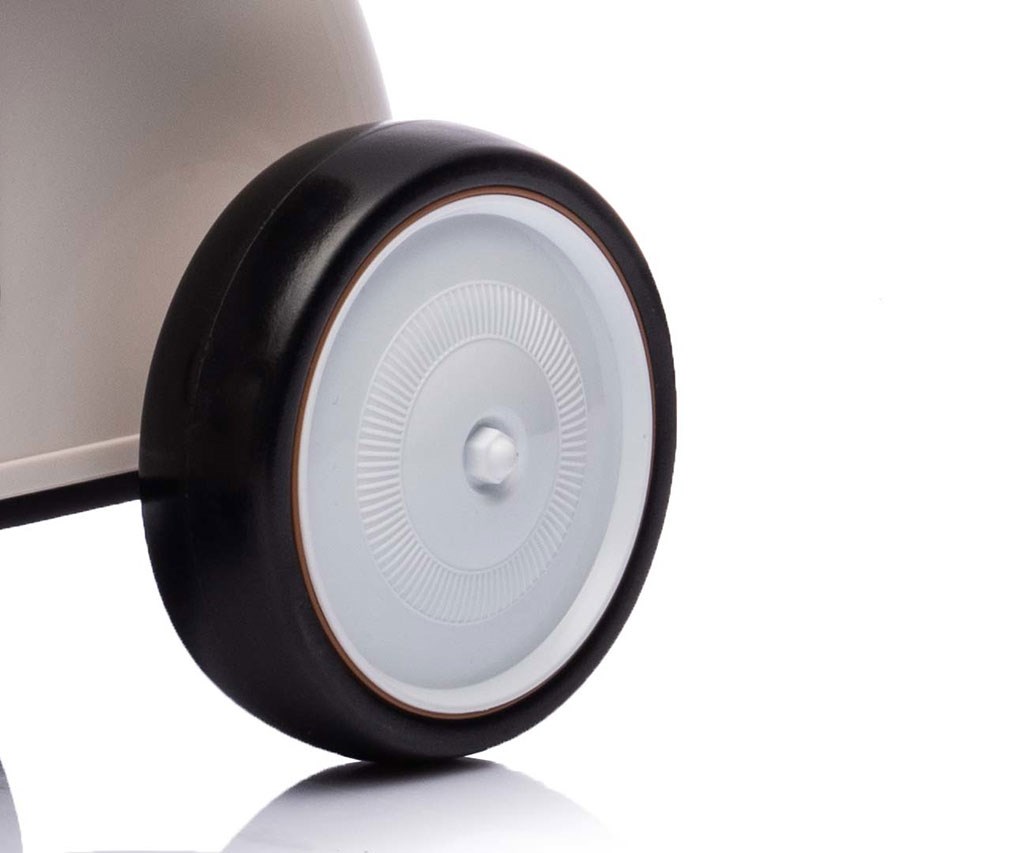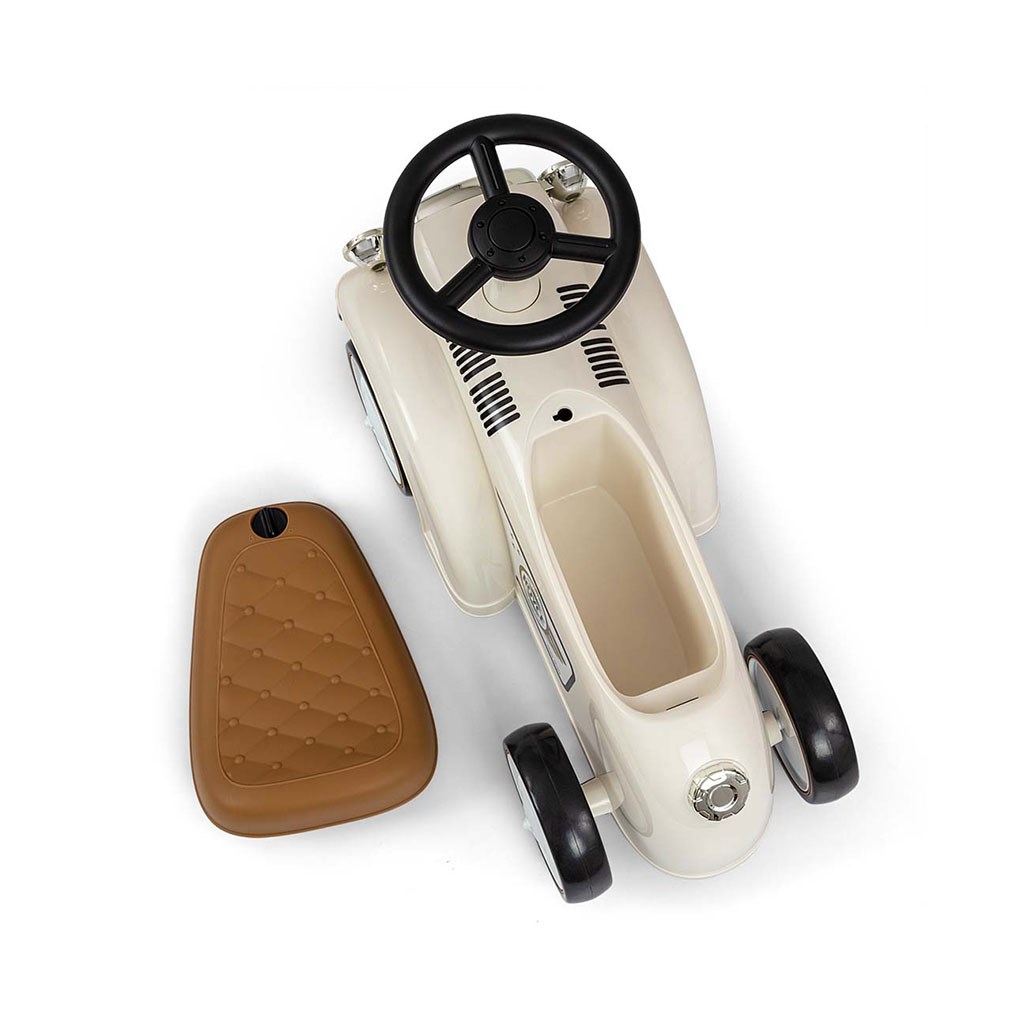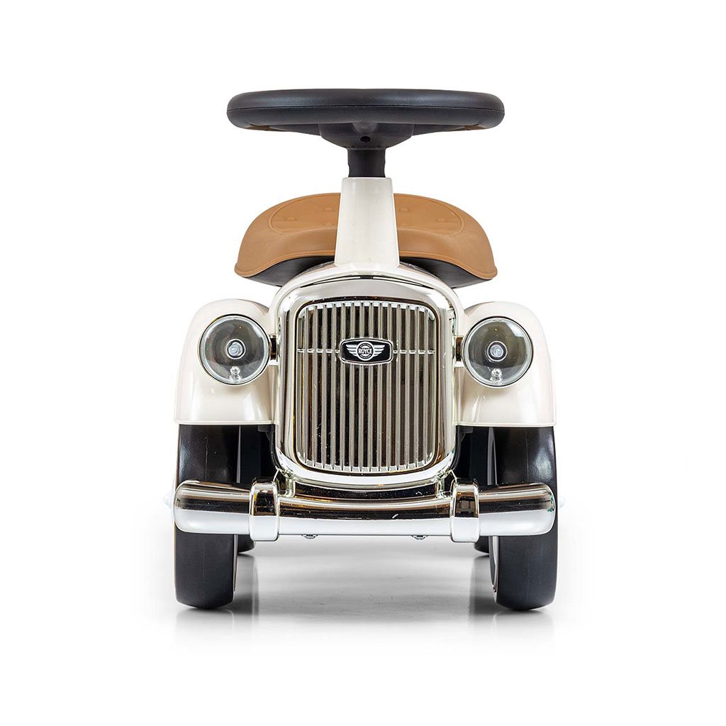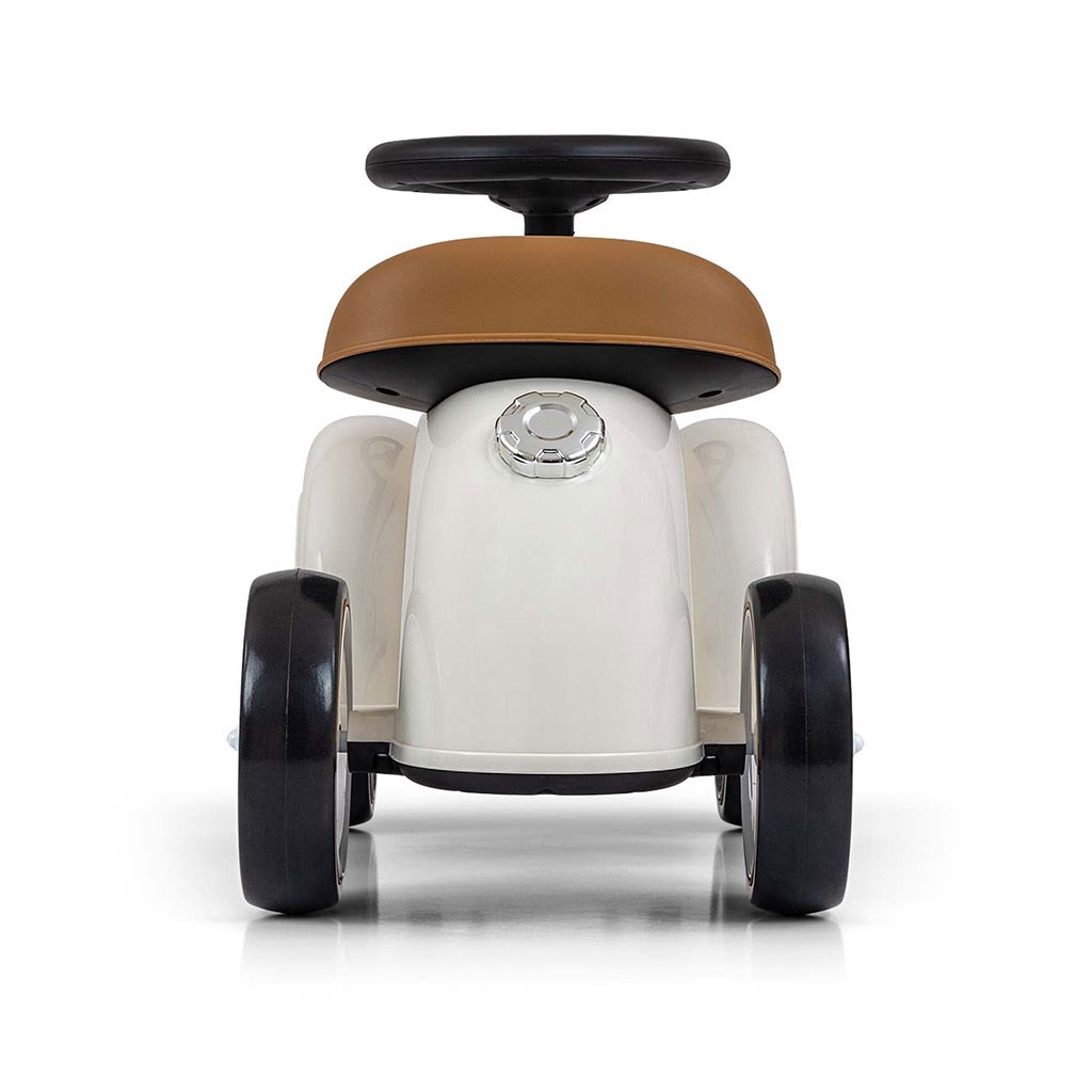 Milly Mally's Royce Vintige bouncer invites little travellers on a retro ride. It catches the eye with its eye-pleasing colours. It is richly equipped. This little car has a steering wheel with sound and a contoured seat. It will provide your child with great driving fun and develop their sense of balance and general motor skills. The car has a lightweight plastic construction and ergonomic shapes. The swivel steering wheel of our Royce rider allows for challenging manoeuvres at home and on walks. The wheels of this beautiful vehicle are made of soft EVA foam. The retro car can be used by your child as their first vehicle with a real steering wheel and horn, as well as a stroller with open storage for toys (small trunk), imitation fuel tank on the back of the vehicle and a front part of the car - the grille in silver. The ROYCE logo adds aesthetics and prestige to this vehicle. The final finishing touch to the Royce is its gift box, which retains the character of retro vehicles from the early days of the automotive industry. The Royce is designed for all children who can sit independently. The rover can be used indoors or outdoors and will make your child's walking time more enjoyable.
