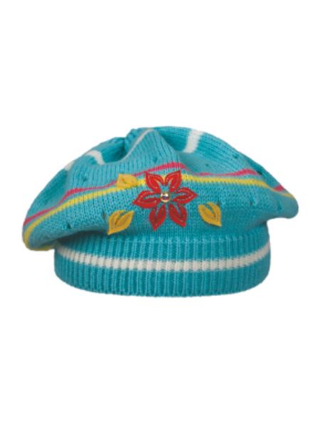 Beautiful children's cap suitable for everyday wear of your children. Thanks to the elastic material, the cap-barette made of fine knitted fabric adapts to your baby's head. The cap is monochrome with stripes and a flower. Very pleasant material. Composition 100% acrylic. Size 52-54. Suitable for older children.