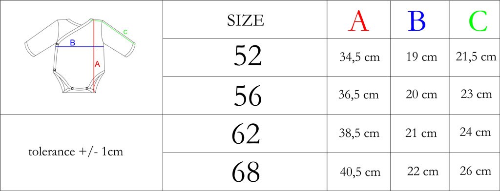 | Baby bodysuit | With long sleeves | Velikost | 56 (0-3m) |