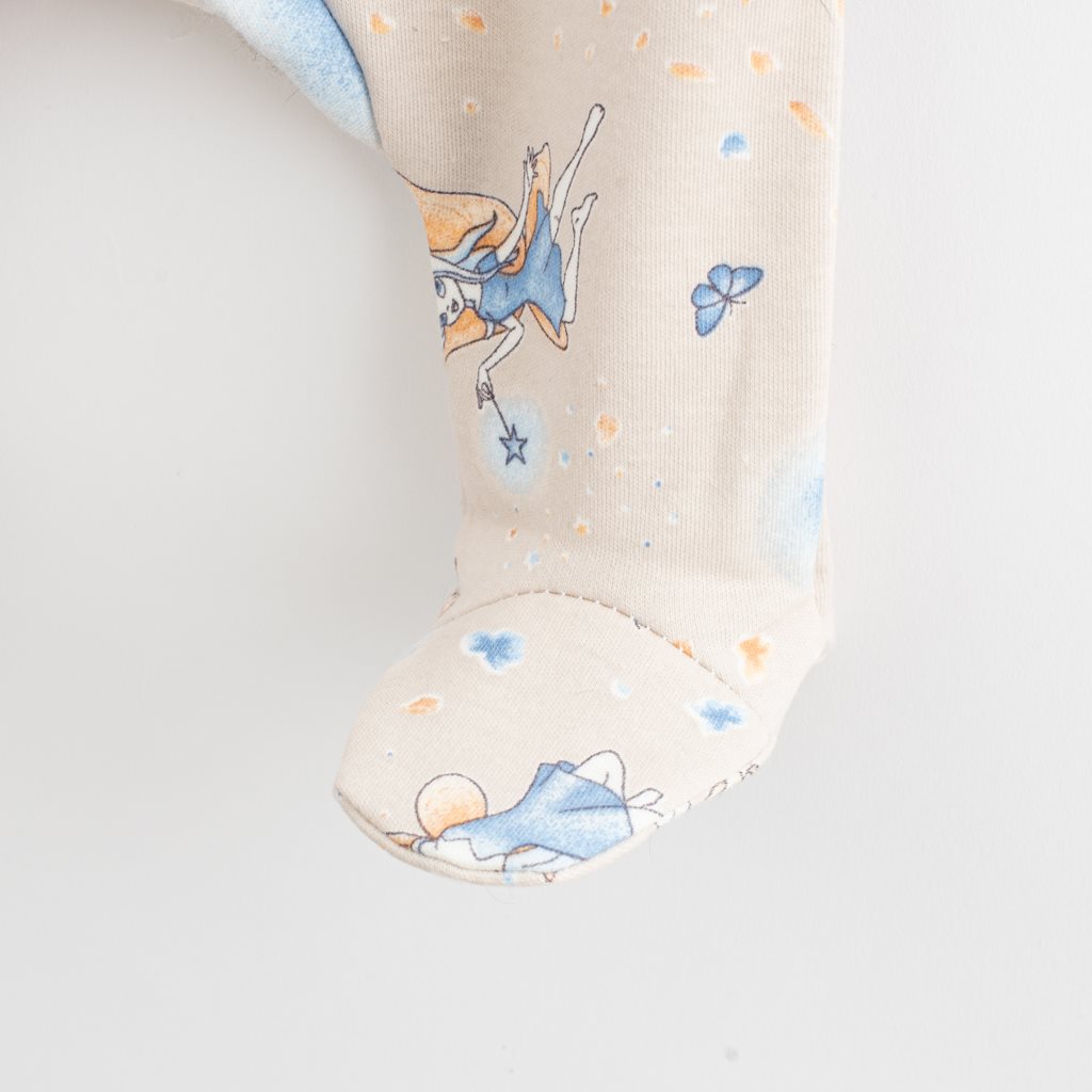 Gorgeous cotton baby booties from the Czech brand New Baby Fairy. The half-socks are decorated with a cute girly motif. They have a wide elastic waistband that does not press on the baby's tummy. Pleasant, soft and high quality material will guarantee your baby's satisfaction. 100% cotton. The Fairy collection includes: short-sleeved T-shirt, long-sleeved bodysuit, half-sweats, sweatpants, cap and shorts.