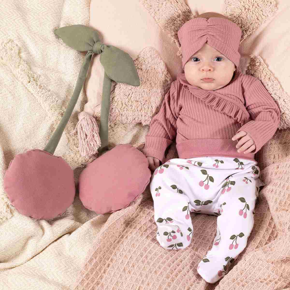 Imaginative cotton half-socks Nicol Emily for babies. The half-socks are decorated with a cute cherry print. They have a wide elastic waistband that does not press on the baby's tummy. Thanks to the soft, cuddly and high-quality material, the baby will feel very pleasant and comfortable. 100% cotton. Oeko-Tex Standard 100.