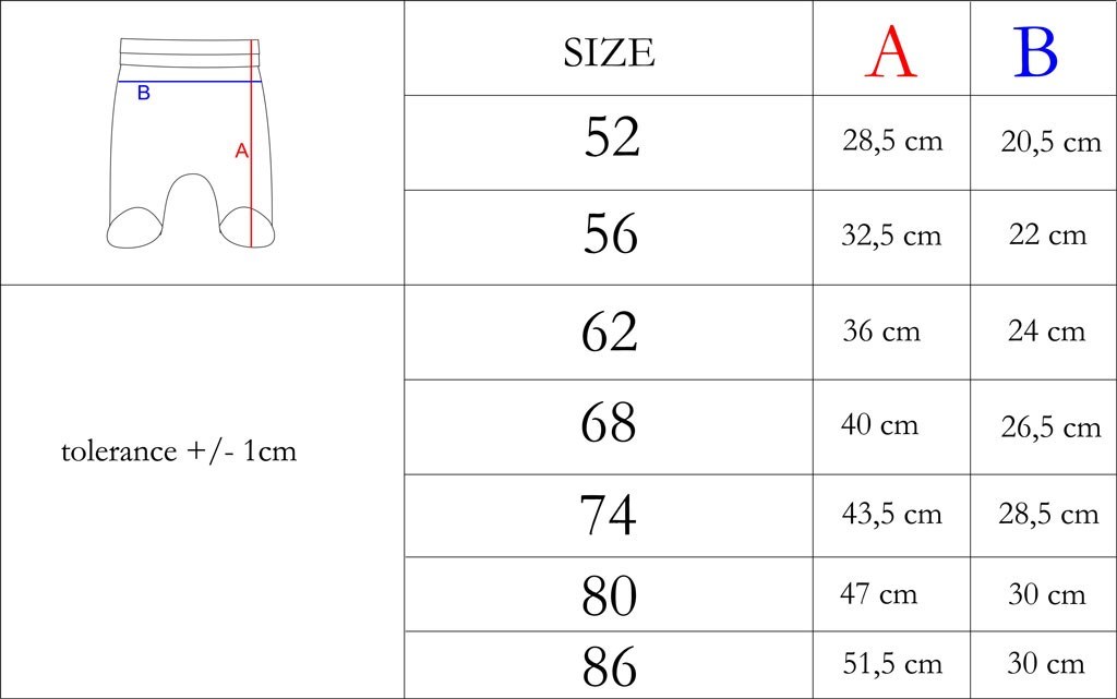 | Velikost | 62 (3-6m) | Baby romper and footed pants | Footed pants |