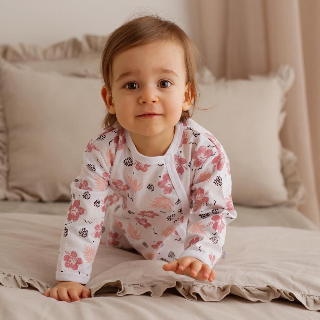 Stylish infant jumpsuit Koala Flowers. The jumpsuit is decorated with a beautiful print. Practical side fastening with studs along the entire length and between the legs will make dressing and changing very easy. Overalls are an important piece of clothing for babies. With any movement, the baby's buttocks are always covered. It is made of very comfortable and high quality material, which is very important for the baby's satisfaction. 100% cotton.
