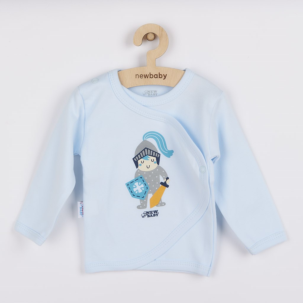 Imaginative baby shirt by Czech brand New Baby Knight. The shirt is decorated with a large picture of a brave knight. The sleeves of the shirt can be folded. The rolled up sleeve prevents scratching by baby's fingernails and keeps baby's hands warm. The full-length side stud fastening makes dressing easy. It has a very soft and high quality material which is ideal for babies. Customer satisfaction is very important to New Baby, which is why we offer you our new high quality Knight collection. 100% cotton.