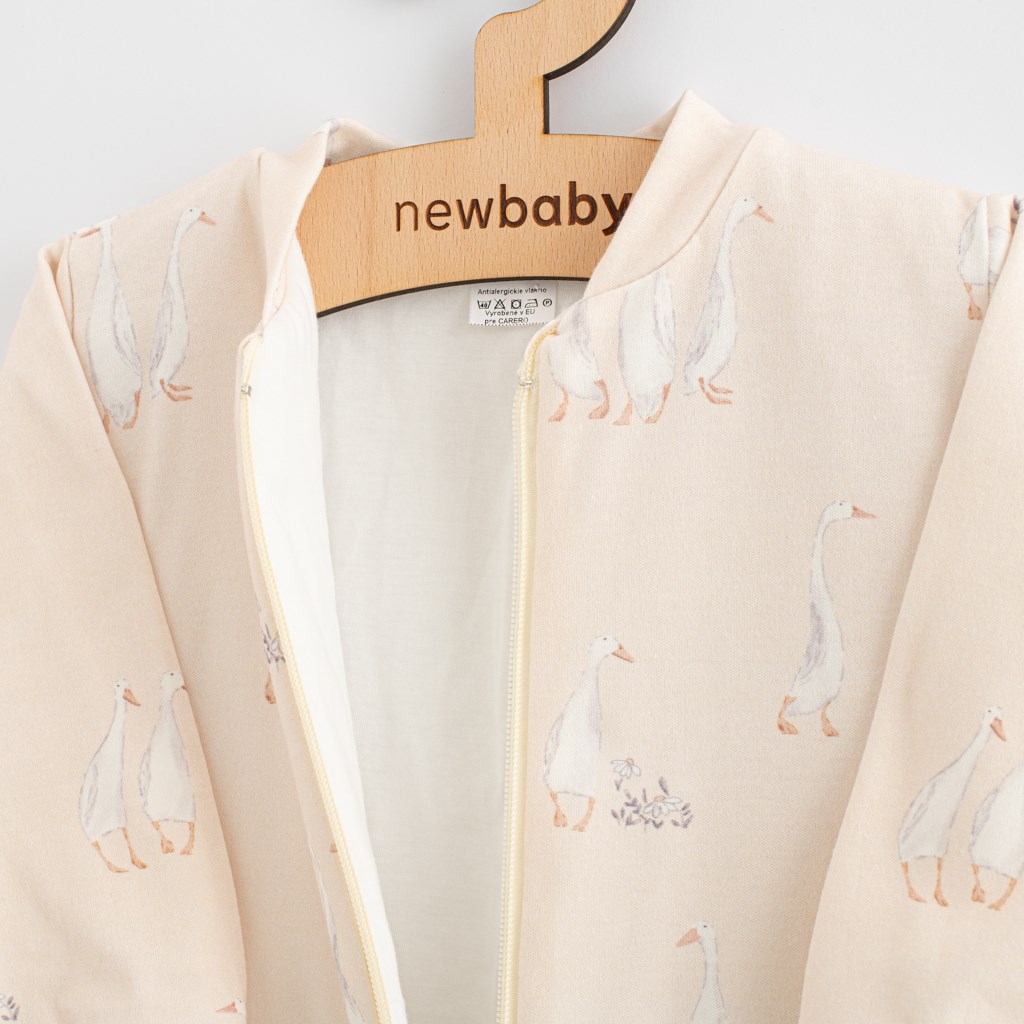Practical cotton baby sleeping bag New Baby Goose for babies. Beautiful baby motif with cute geese, will please baby's little eyes. The sleeping bag is suitable for babies from birth because of its softness and softness. The practical full-length zip fastening makes dressing and changing very easy. The sleeping bag is made of very comfortable and high quality material, which is exceptional and important for the baby's satisfaction. It has long sleeves and is completely filled with anti-allergy fibre except for the sleeves. The baby will thus be warm throughout the sleeping time and there is no risk of kicking his feet. 100% cotton. Filling: 100% polyester. Size: 50x70 cm. OEKO-TEX STANDARD 100.