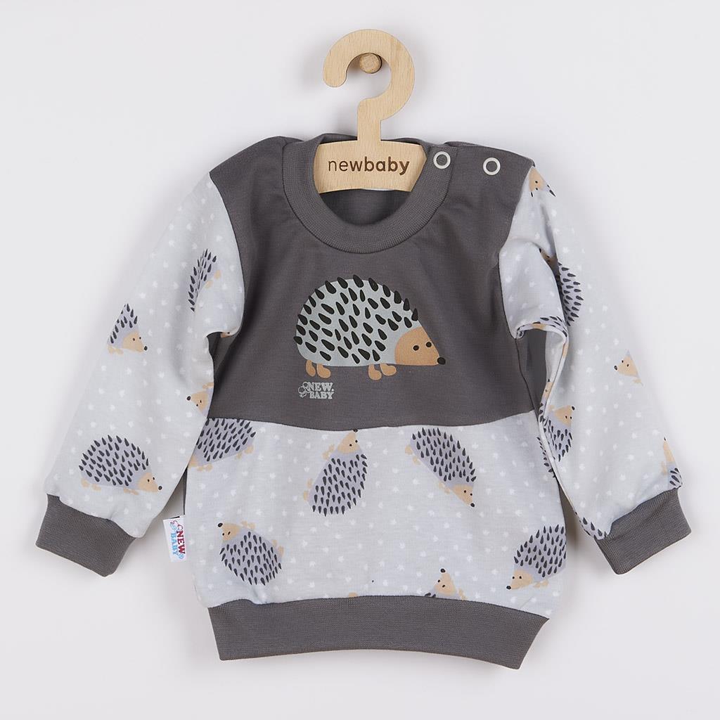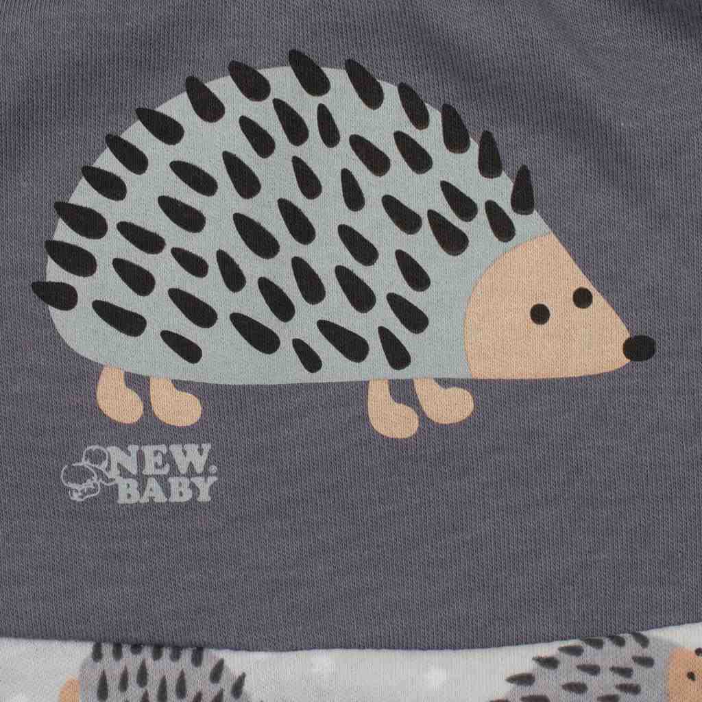 Imaginative and cool cotton baby sweatshirt from the Czech brand New Baby Ježek for babies. The sweatshirt has sleeves and bottom part printed with little hedgehogs. The top part of the sweatshirt is decorated with a large picture of a cute hedgehog and is finished with a wide hem. The practical studded shoulder strap makes dressing and changing very easy. We put emphasis on quality and therefore, thanks to the soft and high-quality material, your baby will feel very comfortable. Imaginative and cool, that's exactly what our New Baby Hedgehog collection is all about. 100% cotton.