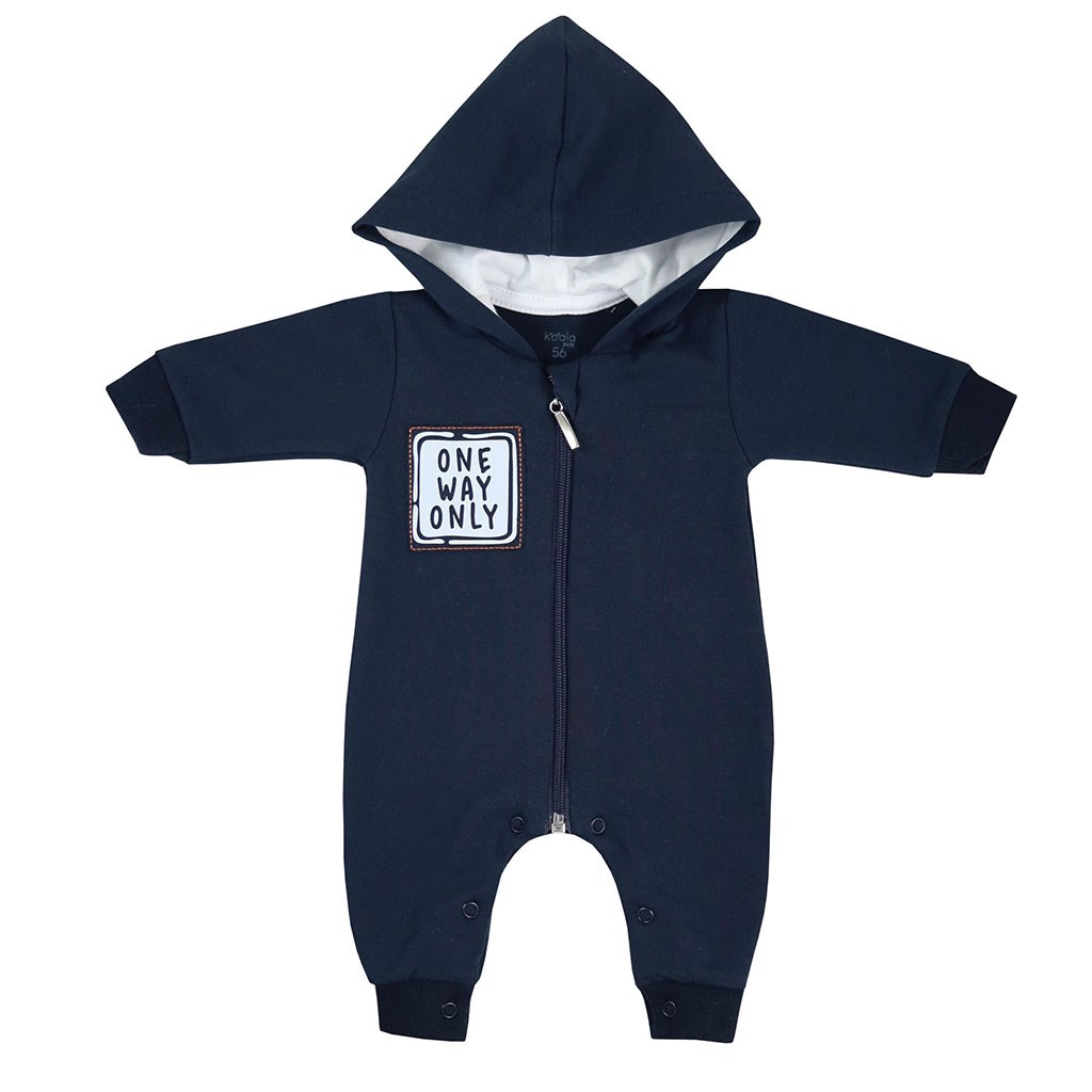 Original and stylish Koala One Way Only jumpsuit. The jumpsuit has a full length zipper, beautiful color and a hood with cotton lining. It has a wide hem around the arms that does not press on the baby's hands. The jumpsuit is perfect for the car seat, pram or for walks. It has versatile use. It is made of a very pleasant, soft material and is very well made. The modern look and cut of the jumpsuit will suit your baby very well. 96% cotton, 4% elastane.