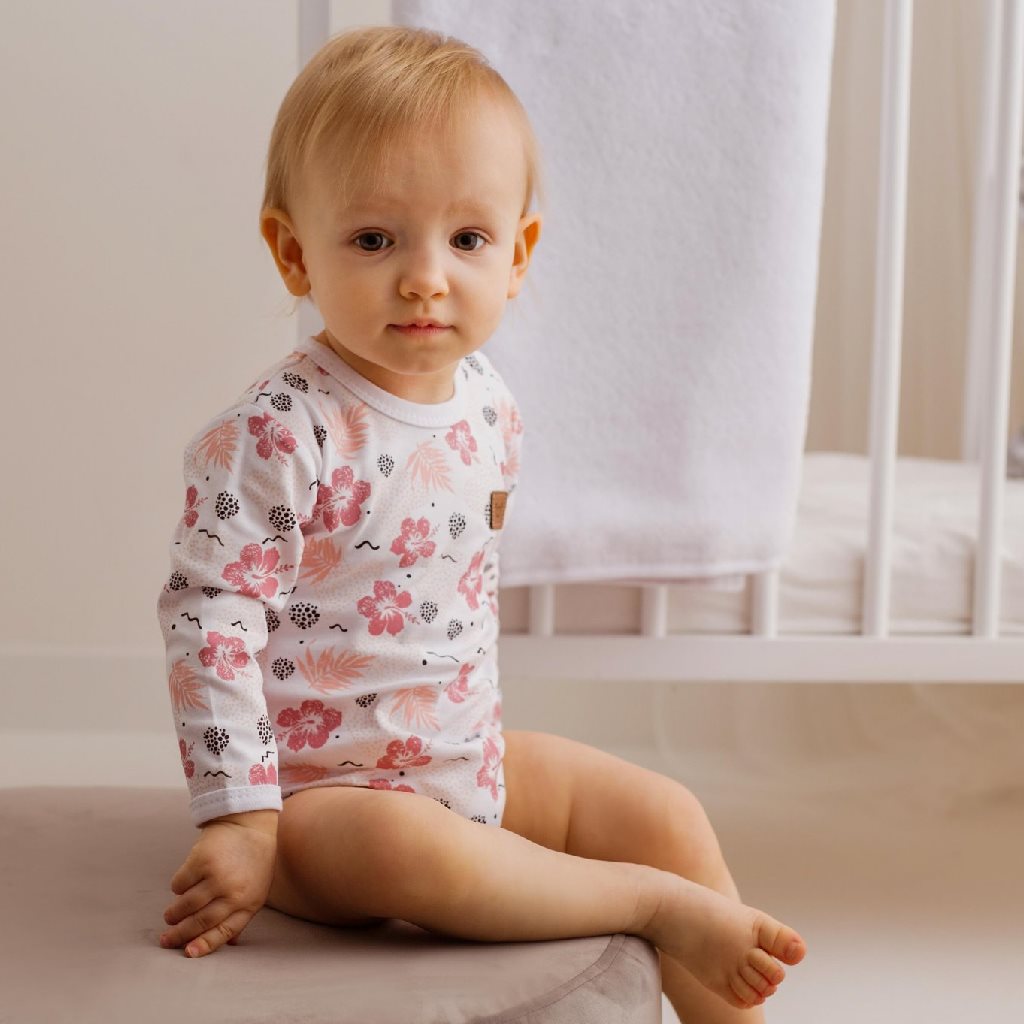 Imaginative long sleeved body by Koala Flowers. The body has a stud fastening on the shoulder and between the legs which makes dressing and changing easier. It is decorated with a beautiful print. The body is an important piece of clothing for babies. During any movement, the baby's buttocks are always covered. The collection is made of very nice and soft material in which your baby will feel very comfortable. 100% cotton.