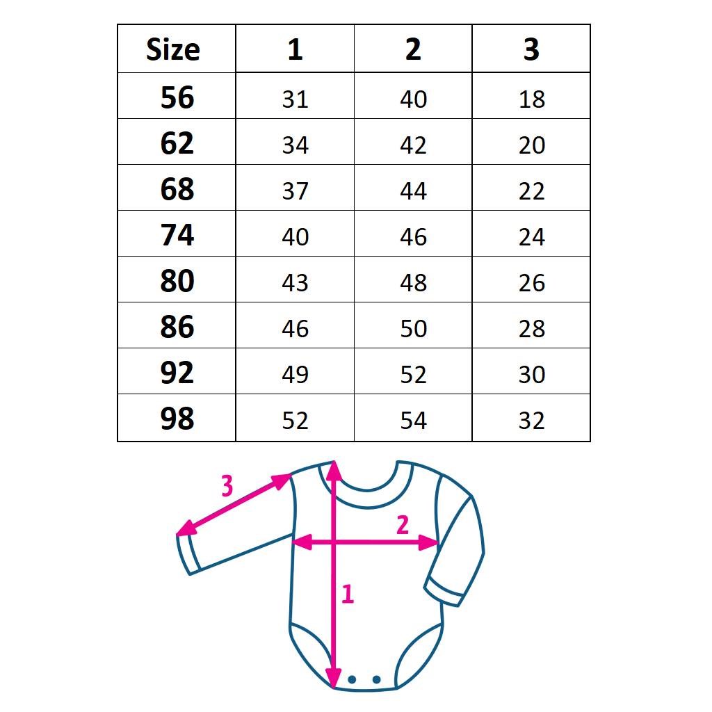 | Baby bodysuit | With long sleeves | Velikost | 62 (3-6m) |