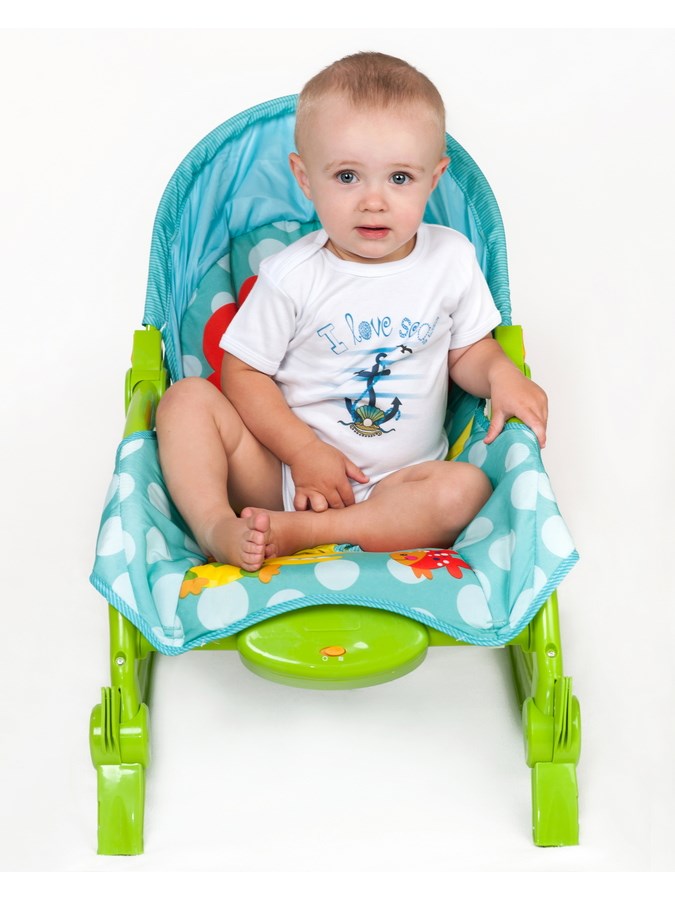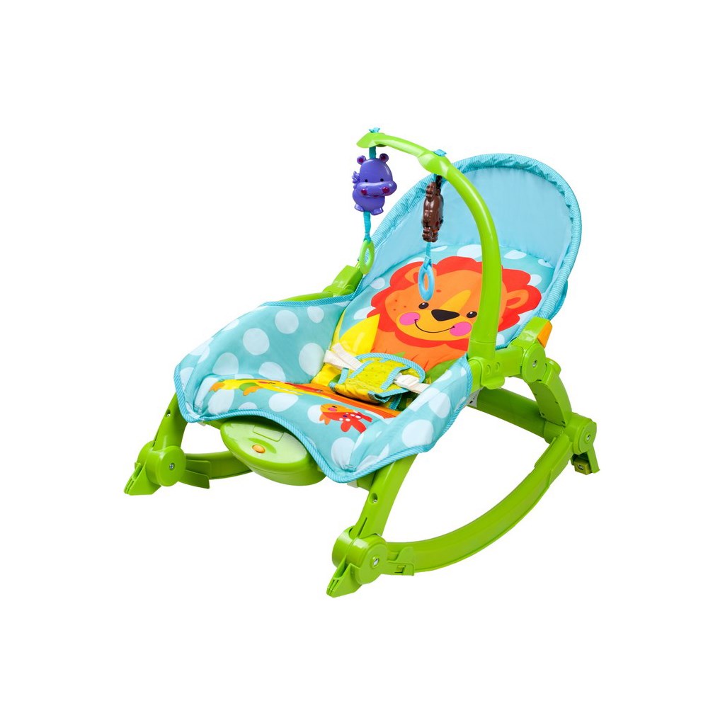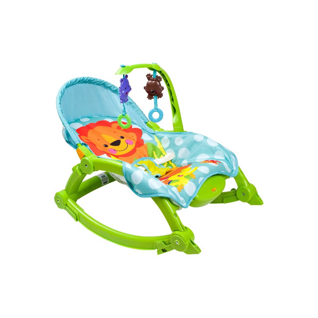 Beautiful Bayo 2in1 rocking chair in cheerful colours for your baby. For very small babies it can be used as a rocking chair. The recliner can also be locked into a fixed position using the hinged legs, suitable for feeding, sleeping etc. The recliner also offers the option of soothing vibrations and has a removable toy holder. The lounger can be folded quickly and easily. Once your baby has grown up, you can turn this lounger into a rocking chair. The lounger can be adjusted to two positions. A fixed position that is ideal for feeding and a moveable position. You can put your baby down for a short nap in the recliner, just recline the backrest and fasten the seat belt, turn on the gentle vibration function and mount the toy holder. You can also fit a special canopy over the baby's head and release the locking mechanism to give you the option of rocking the baby. The lounger is also the perfect feeding aid, where you simply slide out the rocking stops and adjust the backrest to a sitting position. Older children can sit, swing, look at books or draw in it. Composition of the cover: 100% polyester. We recommend cleaning with a damp cloth. Suitable up to 18 kg. Batteries are not included.