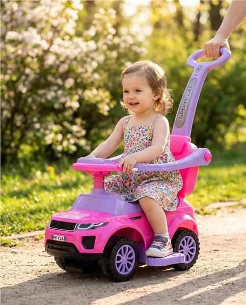 Super slider 3in1 Baby Mix in cheerful colors, is made of high quality plastic material, it is a great and safe toy. The shape of the toy helps to develop the baby's motor skills at the time when they are learning to walk. The slide offers many features - it has lower foot rails that can be removed, a holder and side safety guards. Imitation steering elements make the toy even more attractive. It has 3 buttons on the handlebars with approx. 10 melodies and a siren. The ride-on is designed for both the smallest children who can sit and for children who have already learned to walk. Batteries are not included.