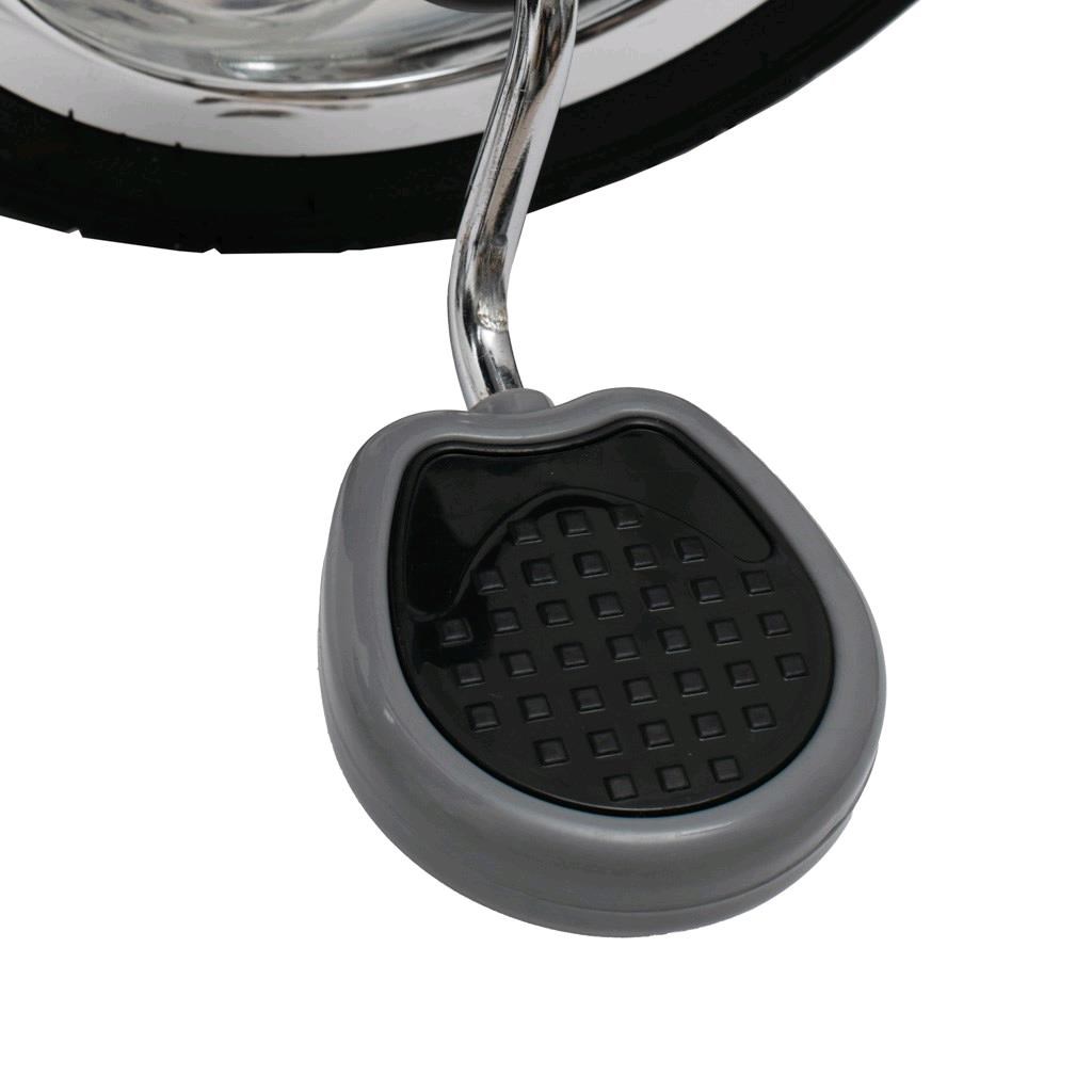 - Foot-operated brake pedals on rear wheels