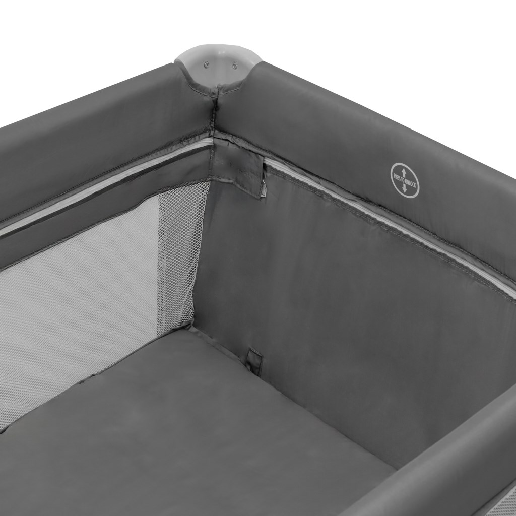 The practical and stylish Baby Mix travel cot is the perfect companion both at home and on the go. It serves as both a travel cot and a playpen, allowing you to enjoy quality time with your little one wherever you are – on holiday, visiting family, or spending time at the grandparents’ home. Grandparents can also comfortably accommodate their grandchildren, even without a permanent cot at home.