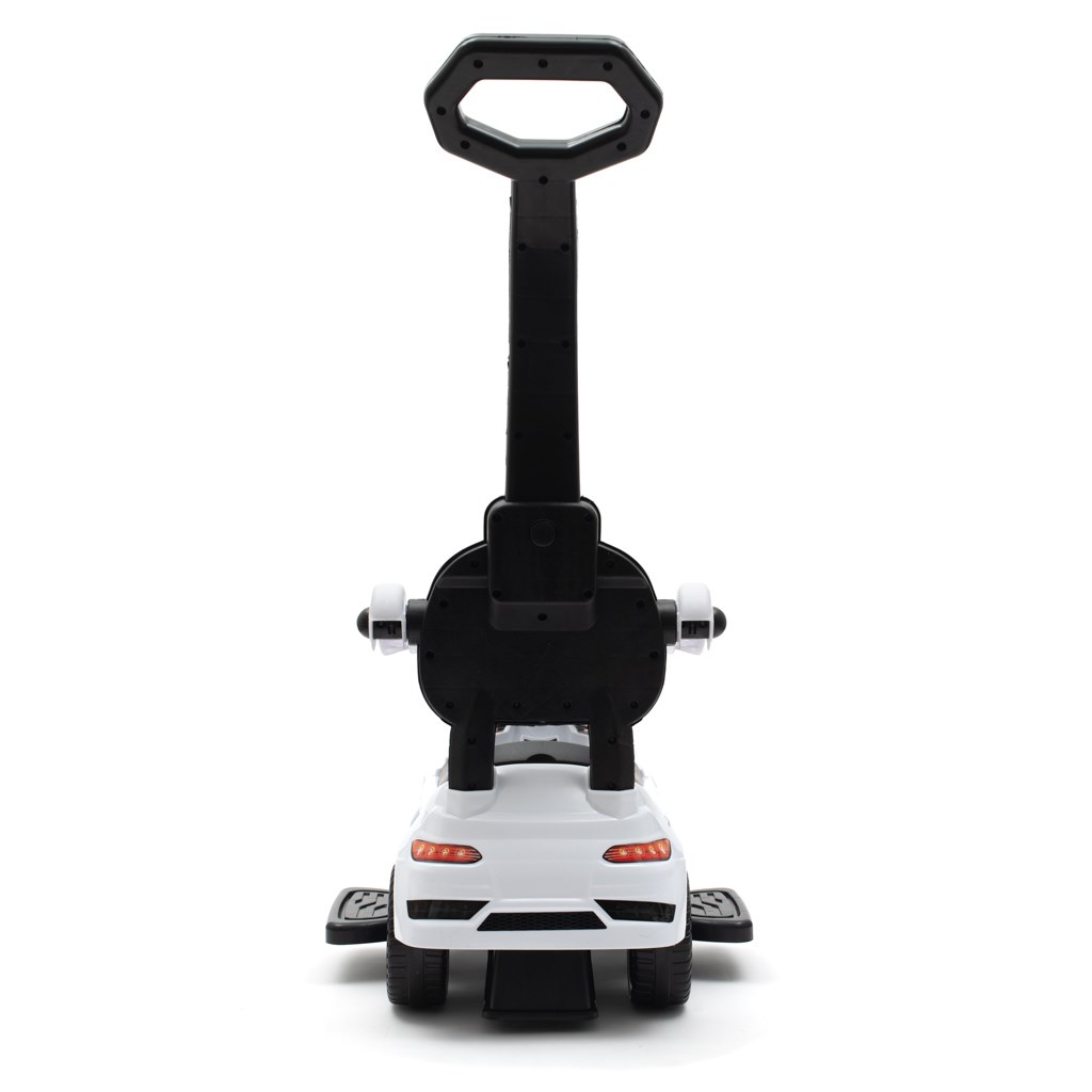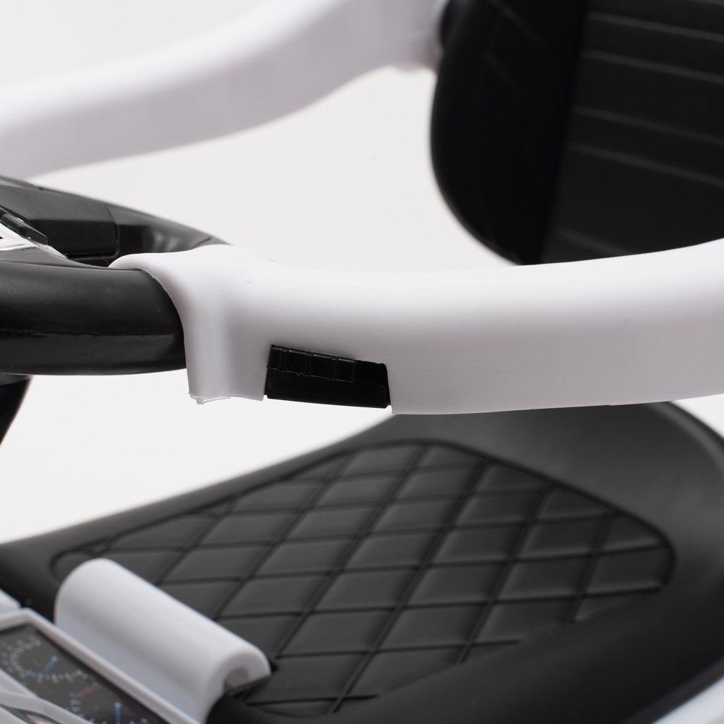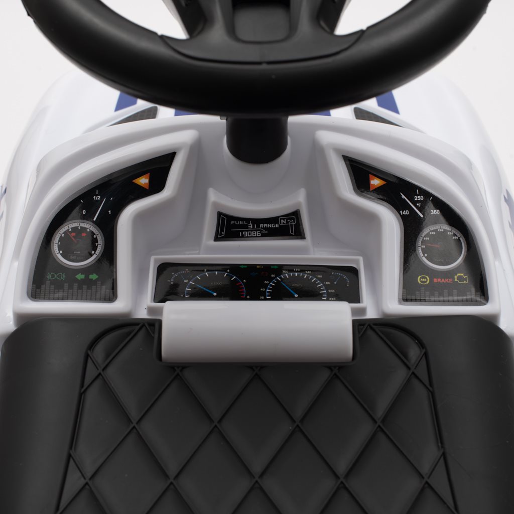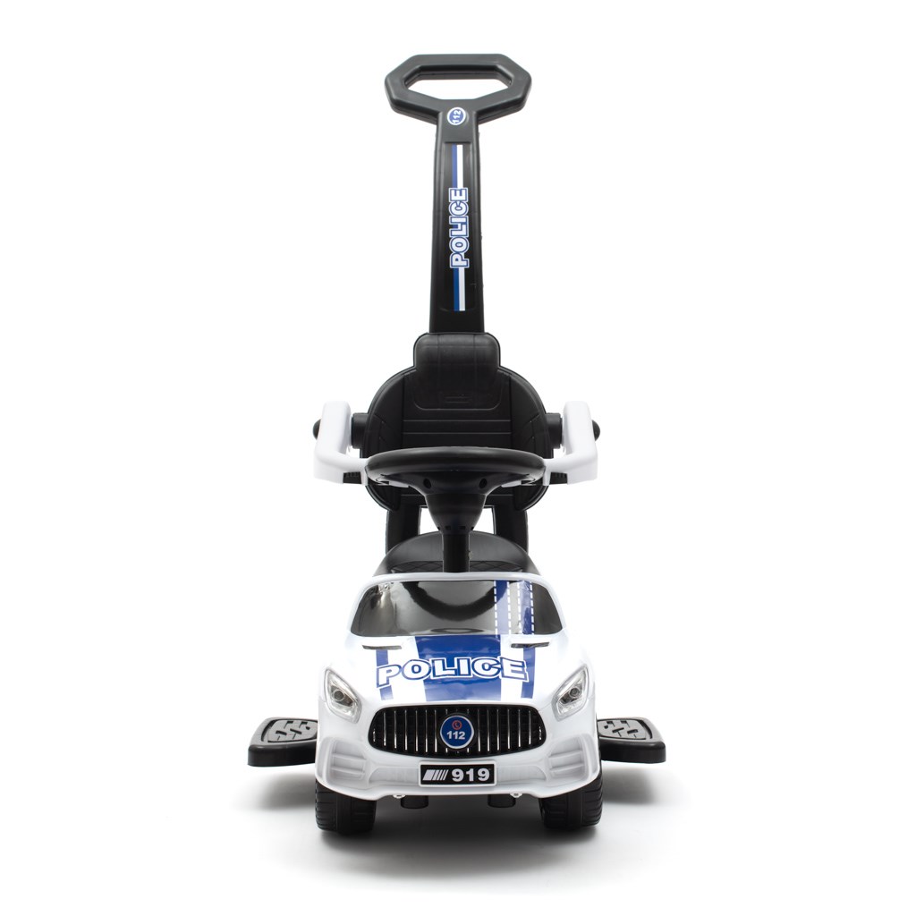 The Baby Mix police car slider is a real treat for all little law enforcement officers. The perfect workmanship and details such as the wheels, lights or the shape of the body, attract everyone's attention and quickly become a favorite toy at home and on a walk. It is made of high-quality materials and is equipped with a sound panel. The ride helps develop the child's motor skills and guarantees lots of fun and enjoyment. Thanks to a special interlock at the back, your rider is protected against tipping over. The guide bar, armrests and footrests can be removed, allowing the child to use the car as a classic bouncer.