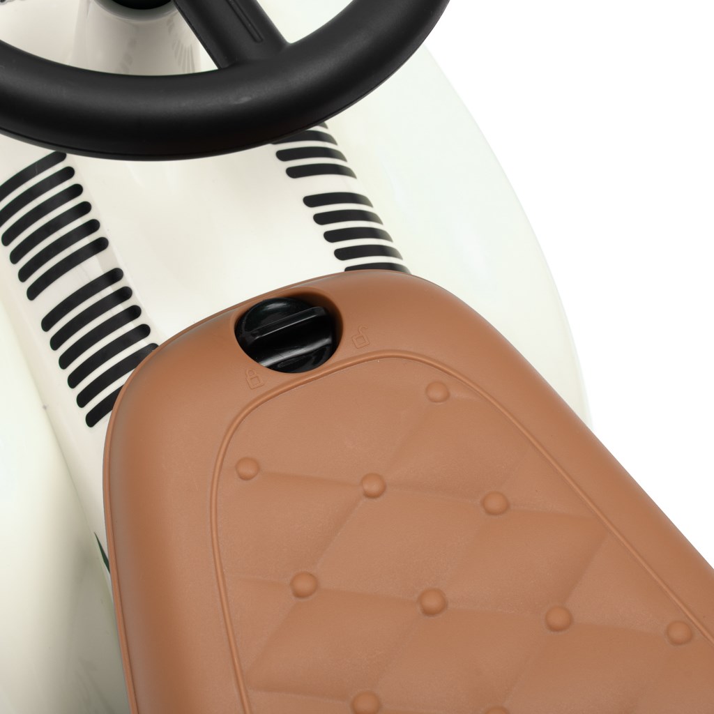 The Retro children's bicycle invites little travellers on a retro ride. It catches the eye with its eye-pleasing colours. It is richly equipped. This little car has a steering wheel with sound and a shaped seat. It will provide your child with great driving fun and develop their sense of balance and general motor skills. The car has a lightweight plastic construction and ergonomic shapes. The Retro car's swivel steering wheel allows for challenging manoeuvres at home and on walks. The wheels of this beautiful vehicle are made of soft EVA foam. Retro car can be used by your child as their first vehicle with a real steering wheel and horn, as well as a stroller with open storage space for toys (small trunk), imitation fuel tank on the back of the vehicle and a front part of the car - the grille in silver. The Royce is designed for all children who can sit independently. The car can be used indoors and outdoors and will make your child's time spent on a walk more enjoyable.