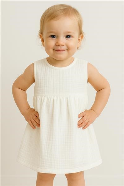 Fashionable muslin baby dresses by Czech brand New Baby Elizabeth for all little girls. The dress is sleeveless in the shape of the letter A. The bottom part has a beautifully ruffled skirt. The stud fastening at the back makes dressing easier. The dress has a very nice, soft and high quality material that is suitable for babies. They are lightweight and very comfortable to wear. Customer satisfaction is very important to New Baby and that is why we offer you our high quality summer muslin dresses. 100% cotton.