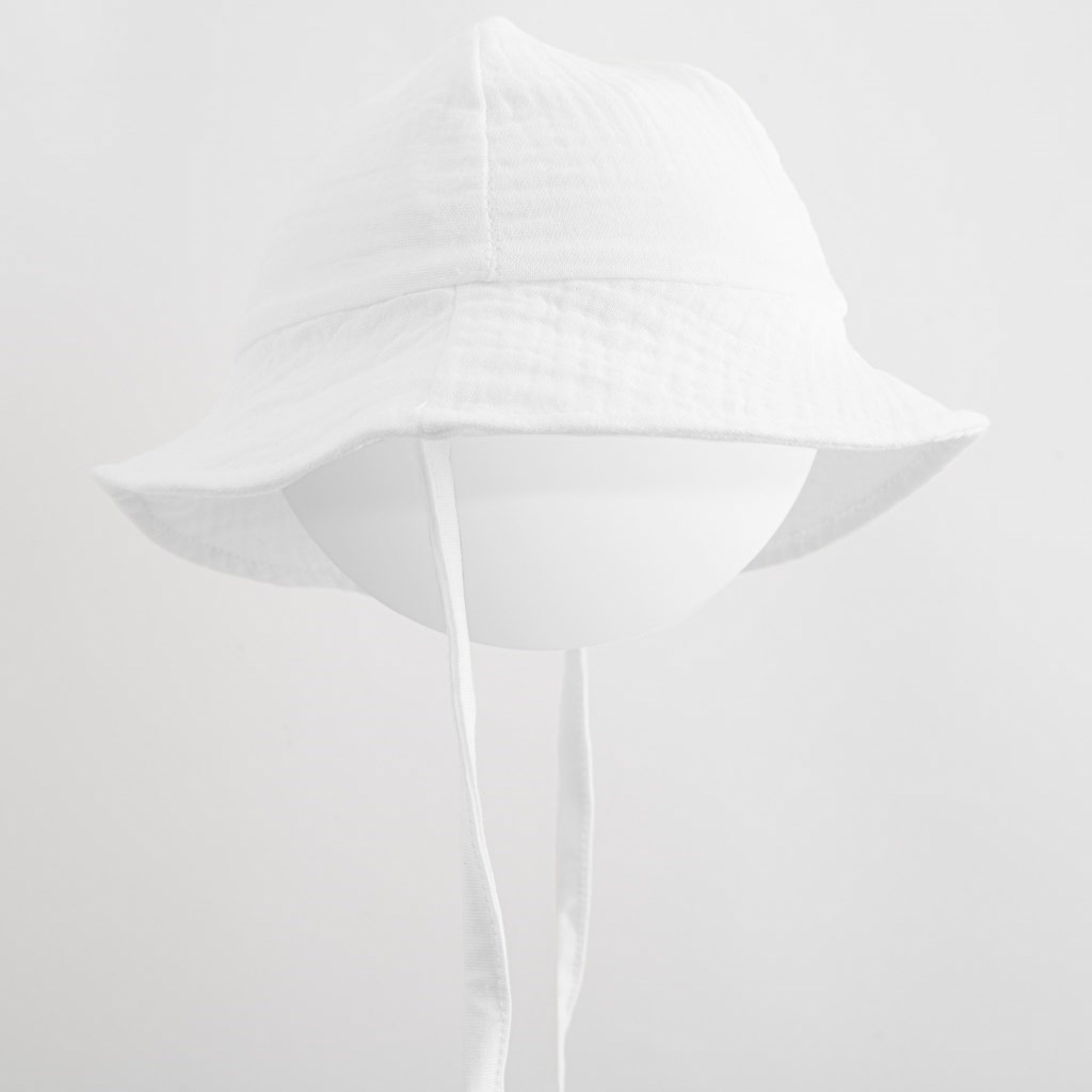 Beautiful and practical muslin baby hat by Czech brand New Baby Elizabeth. The hat is designed for babies and small children who need protection from the sun. It is tied with laces. The lacing is comfortable, so you don't have to worry that the hat could easily pull off or fall off. Baby will look cute while being protected from the sun's rays. Muslin is one of the purest, simplest and softest fabrics in the world. The finely woven breathable material is so perfect that babies all over the world will love it. The lightweight texture allows the muslin to "breathe" and ensures sufficient air circulation, reducing the risk of overheating. This feature helps keep your child comfortable, safe and parents calm. The muslin is very durable, so much so that it can easily handle repeated washings and becomes lighter and softer over time. 100% cotton.