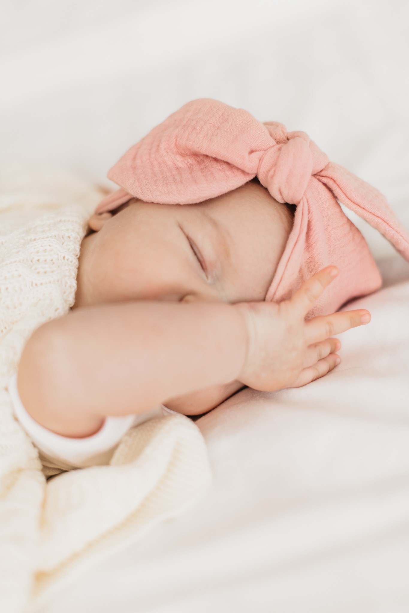 Baby Muslin Headband New Baby Feeling sage color, pink