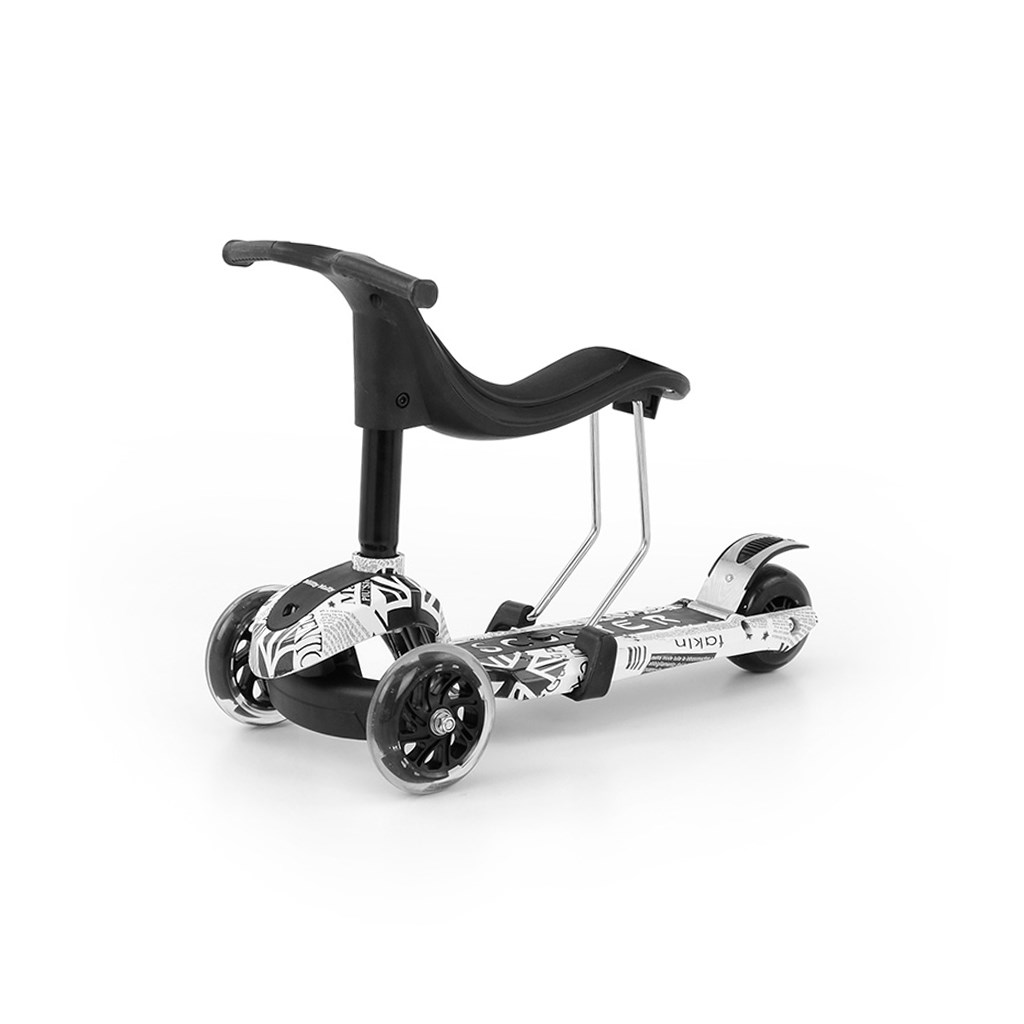 Super stylish Milly Mally Little Star kids scooter. It's not just a scooter, it's also a scooter for children from their second birthday onwards that has both a seat and a guide bar for parents. Load capacity up to 20 kg. The seat and the guide bar can be easily removed and the scooter suddenly becomes a scooter with a load capacity of up to 50 kg. It is ideal for active children who are constantly on the move. Little Star is made of high quality materials, ideal for walks and great fun. The metal construction guarantees the durability of the product. The scooter also has a brake and a mudguard on the rear wheel. Steering and twisting works on the principle of body balance. The big advantage of the scooter is the 3 wheels that provide stability and safety. Children will also enjoy the front wheels that light up during the ride. Little Star is 3in1, comfort and simplicity in a modern form.