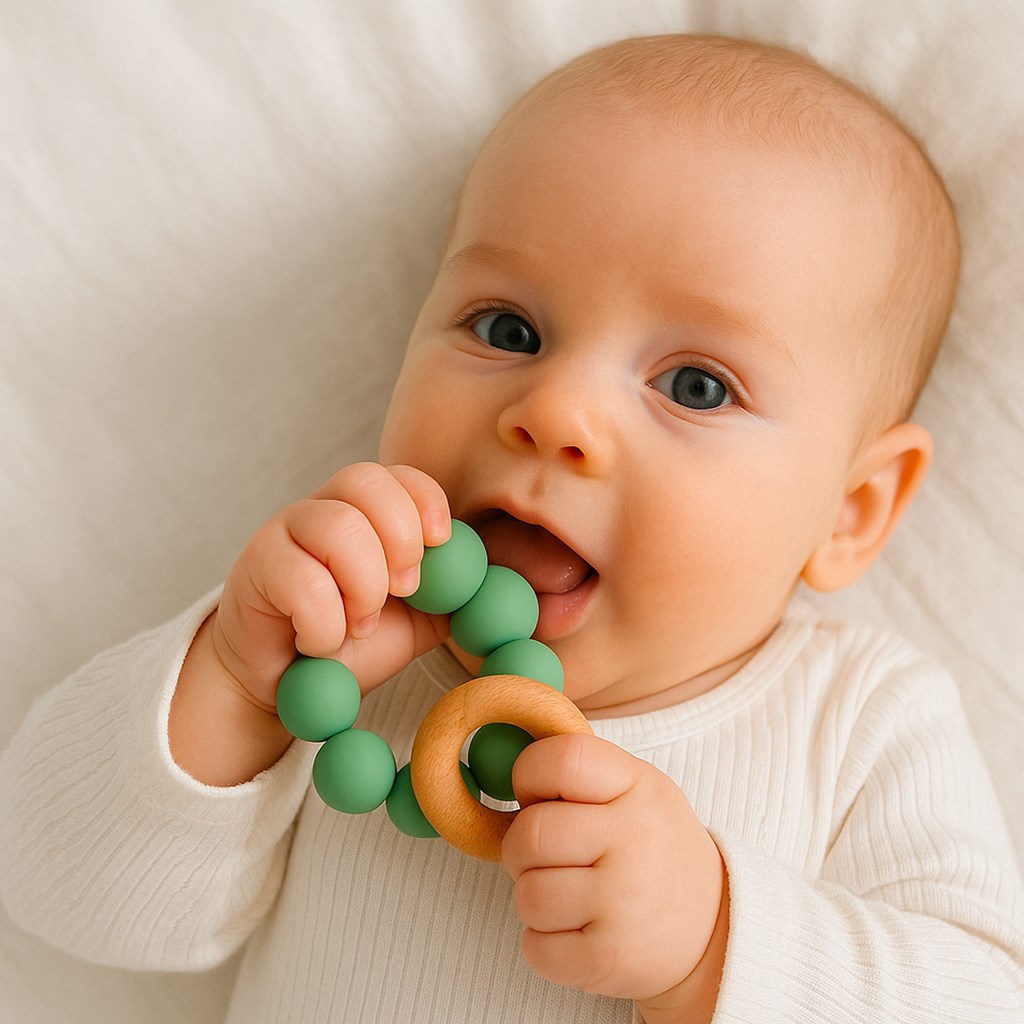 Natural materials: Made from a combination of wood and soft, baby-safe silicone (BPA-free), gentle on delicate gums.