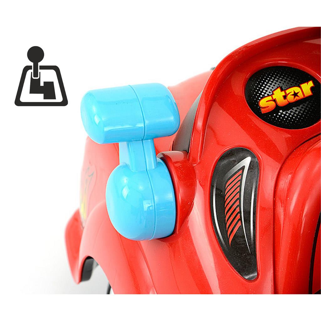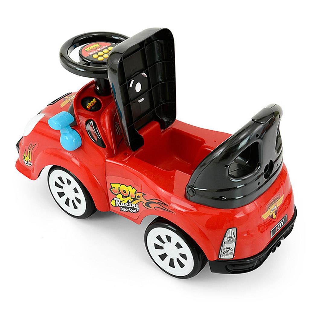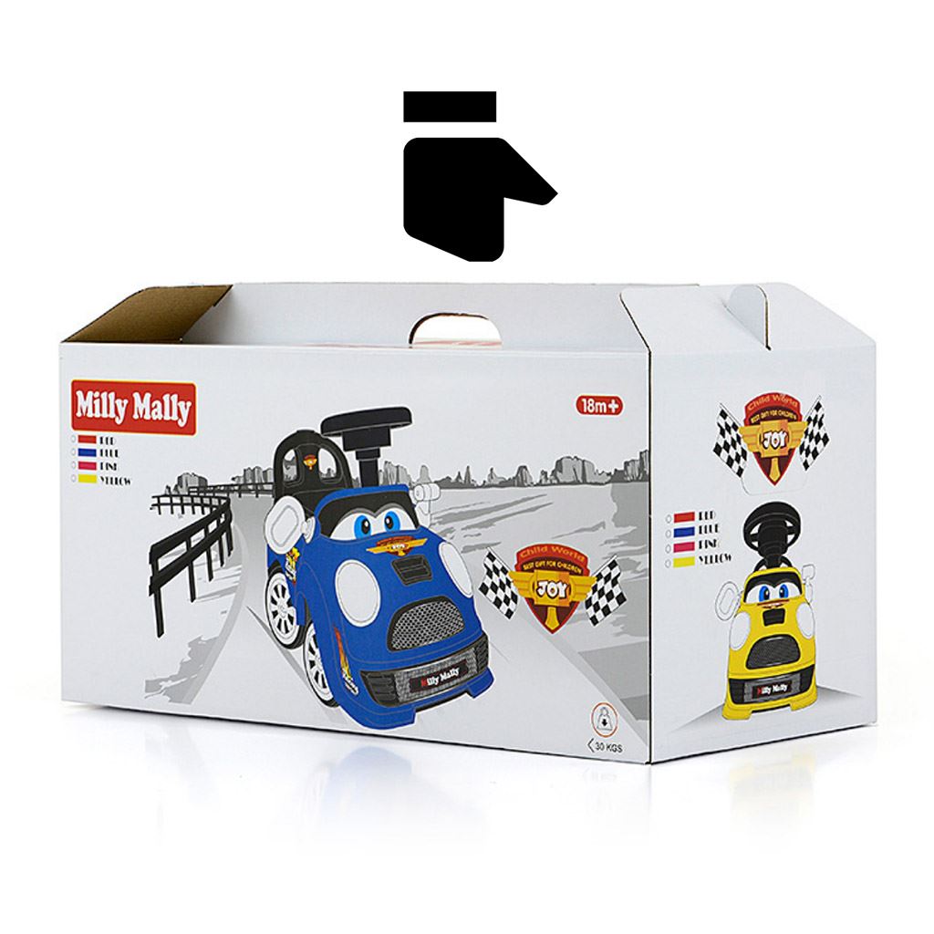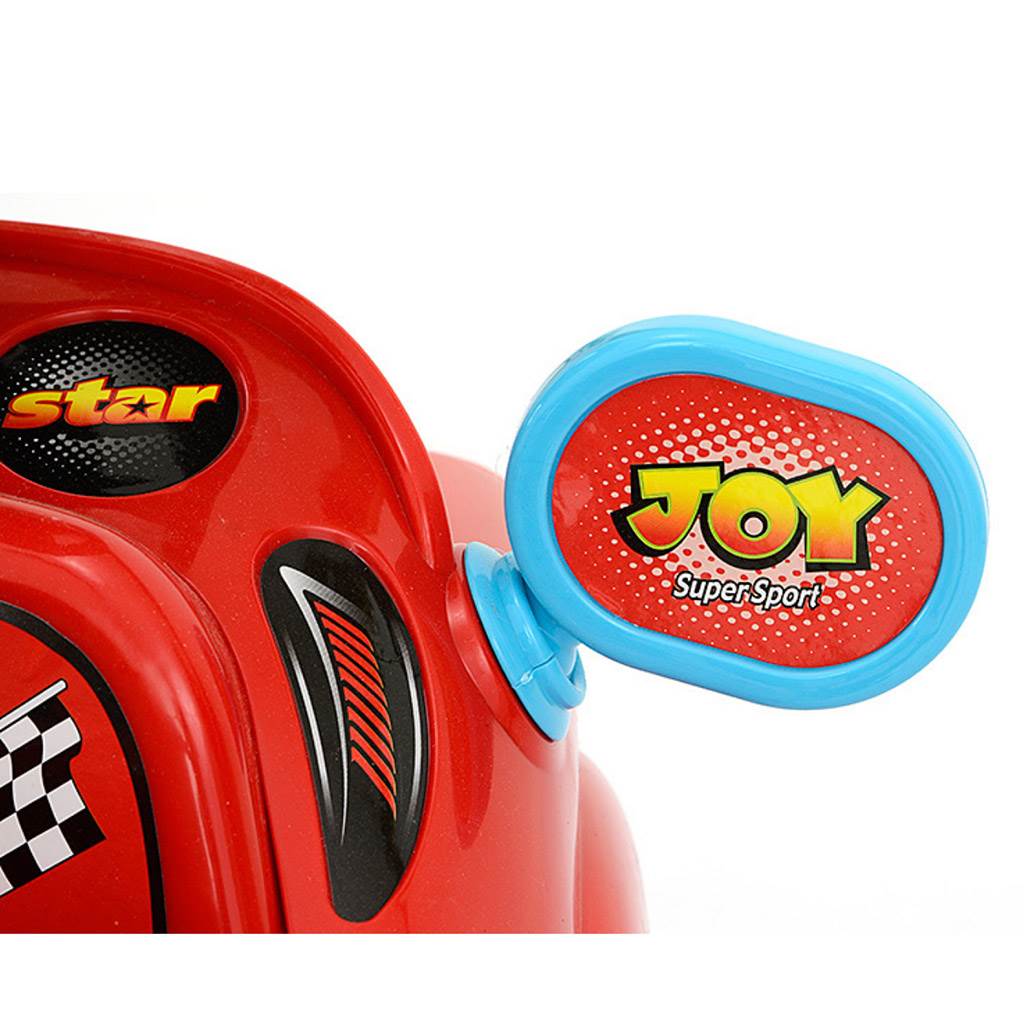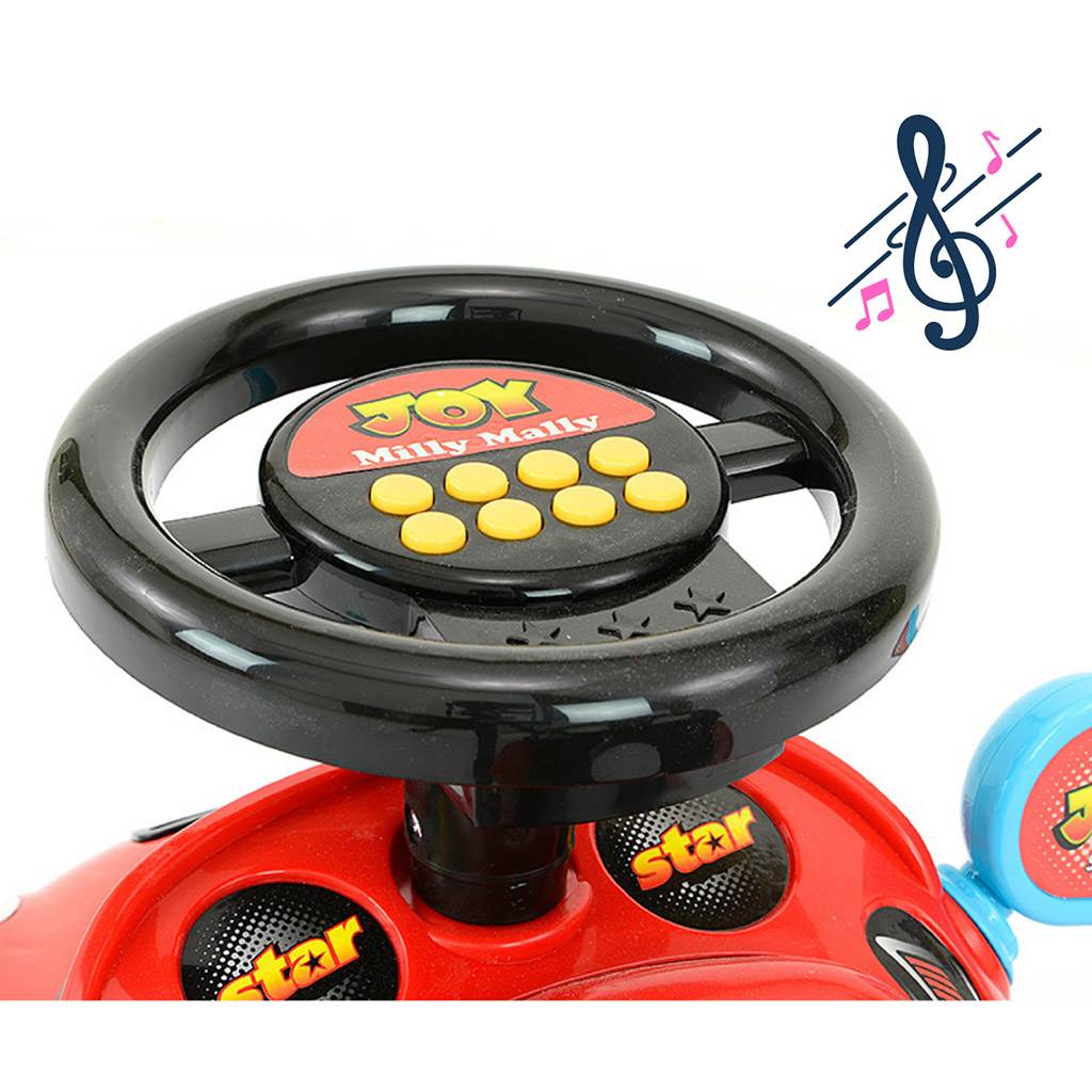 The Milly Mally JOY baby slide with sound is designed for children aged 18 months and up. The ride is made of high quality plastic material, which makes it very stable and completely safe. Thanks to its rich equipment it will provide your child with a lot of fun. Assembly and disassembly of the slide is very easy. Joy will be a great first car for your child. The shape of the toy helps to develop the child's motor skills. The steering wheel is equipped with buttons with 8 melodies - engine start, horn, acceleration sound, sound of pressing the accelerator pedal, sound of reversing, sounds of road traffic, sound of ambulance, police or fire truck. Runs on 2 AA batteries, not included. The rider is also equipped with a shift lever that makes a sound, a movable rear-view mirror, storage space under the seat for toys and other small items, an ergonomic backrest and a steering limiter (anti-tip).