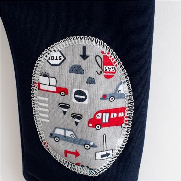 Modern and practical sweatpants from the Czech brand New Baby Go!go!go! The sweatpants have a wider waistband with an elastic band, a wider hem on the legs and cute patches with a car print on the knees. Quality material ensures comfort when wearing. Composition: 95% cotton, 5% elastane. The Go!go!go! collection includes: short-sleeved bodysuit, short-sleeved T-shirt, sweatpants and cap and shorts.