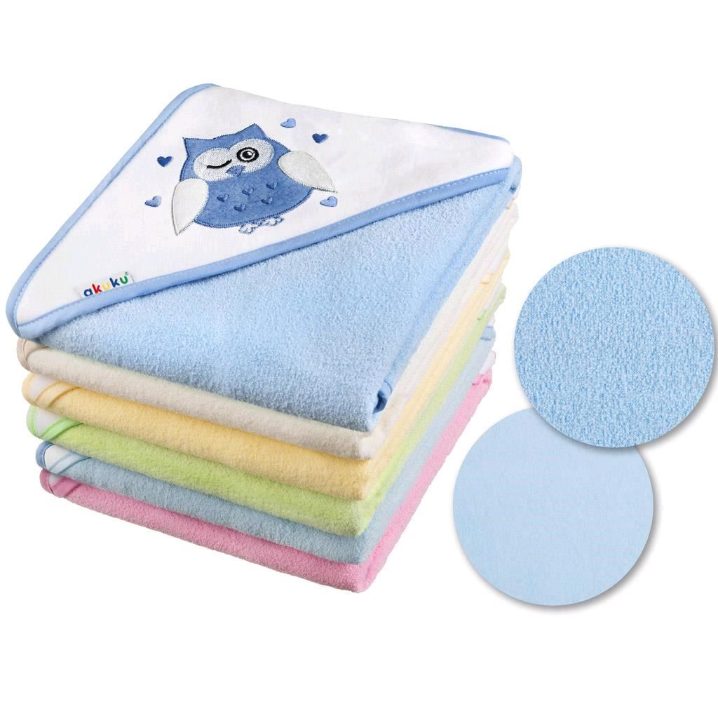 Beautiful baby towel Akuku with picture and hood. The bath towel is made of nice and soft material, ideal for babies. The inside of the towel is cotton, the outside is fleece for better warmth. Dimensions: approx. 80x80 cm. 100% cotton.