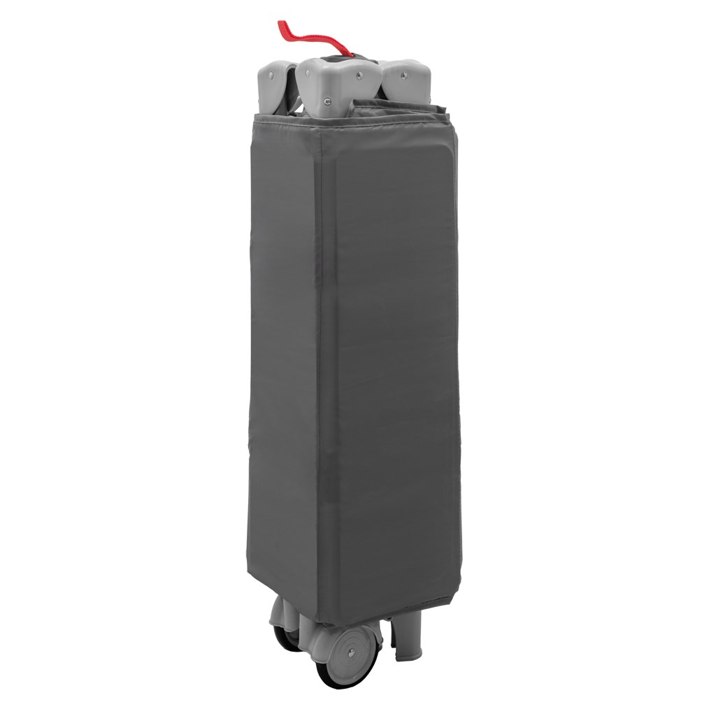 The cot is easy to fold and, thanks to its lightweight frame and integrated wheels with brakes, it can be moved effortlessly from room to room. Mesh side panels ensure proper air circulation and constant visual contact with your baby. When folded, the cot fits into a handy transport bag, which is included.