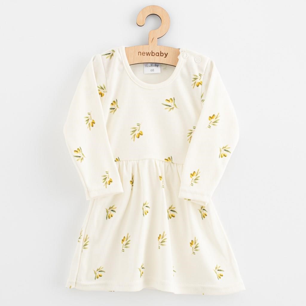 Adorable baby dress New Baby Olivy, perfect for every little lady. The dress is lightweight, soft, and decorated with a charming olive print. For easy dressing, it has a snap closure.