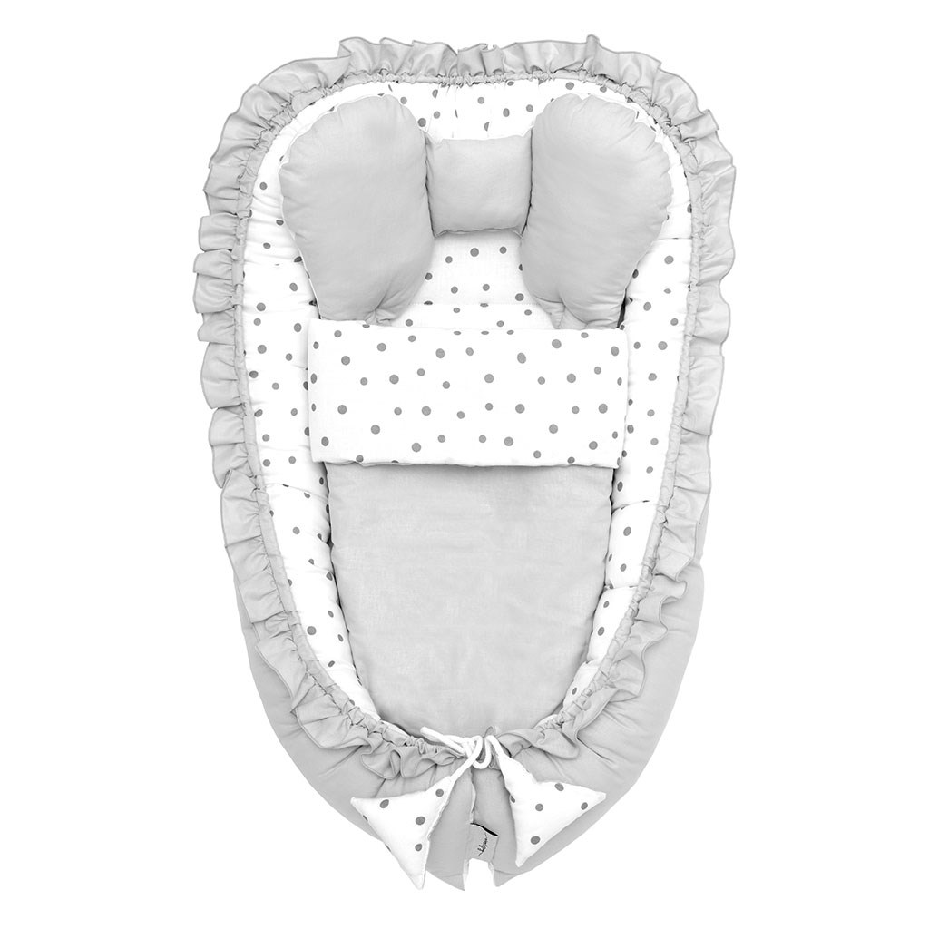 Belisima baby nest with blanket. It gives babies a feeling of security, follows the shape of mum's body and makes the baby feel as comfortable as in mum's tummy. The nest also includes a stabilising pillow and a blanket. The baby falls asleep much better and is calmer. The nest is pleasant to the touch and beautifully soft. 100% cotton, filling: 100% polyester. Dimensions: approx. 55x75 cm, internal dimensions: approx. 35x59 cm. Size: 70x50 cm.