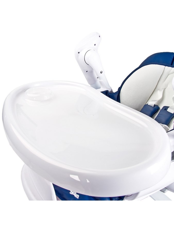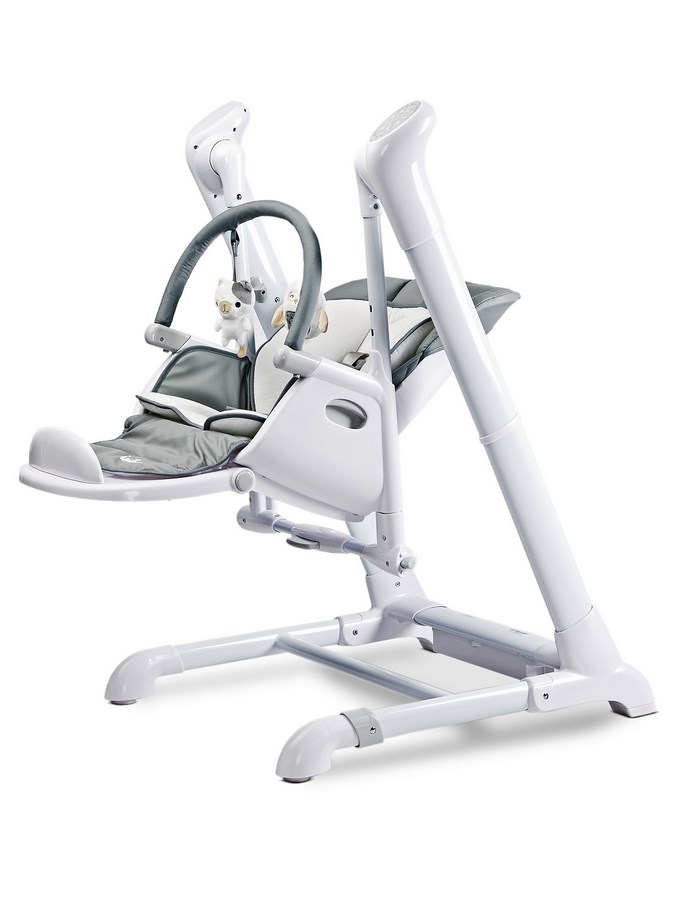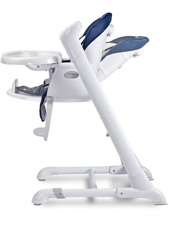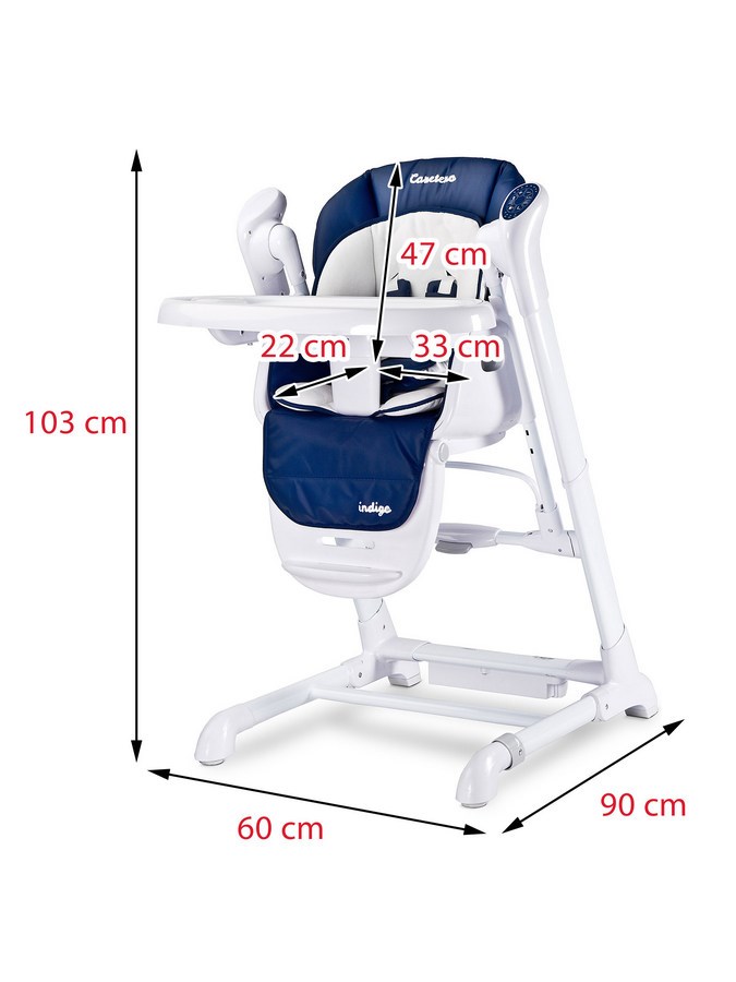 Beautiful Caretero Indigo 2in1 highchair. It offers a highchair and swing in one set. Comfortable to use and full of useful features. The Indigo highchair has charmed parents, has become an interior decoration and has been designed with attention to detail. The highchair is comfortable, has a removable counter and combines safety and practical use. It has a high quality cover that is very soft and pleasant to the touch. The seat belts are equipped with protectors to ensure your child's comfort. The chair easily transforms into a beautiful swing, which also engages children with the toy handle.