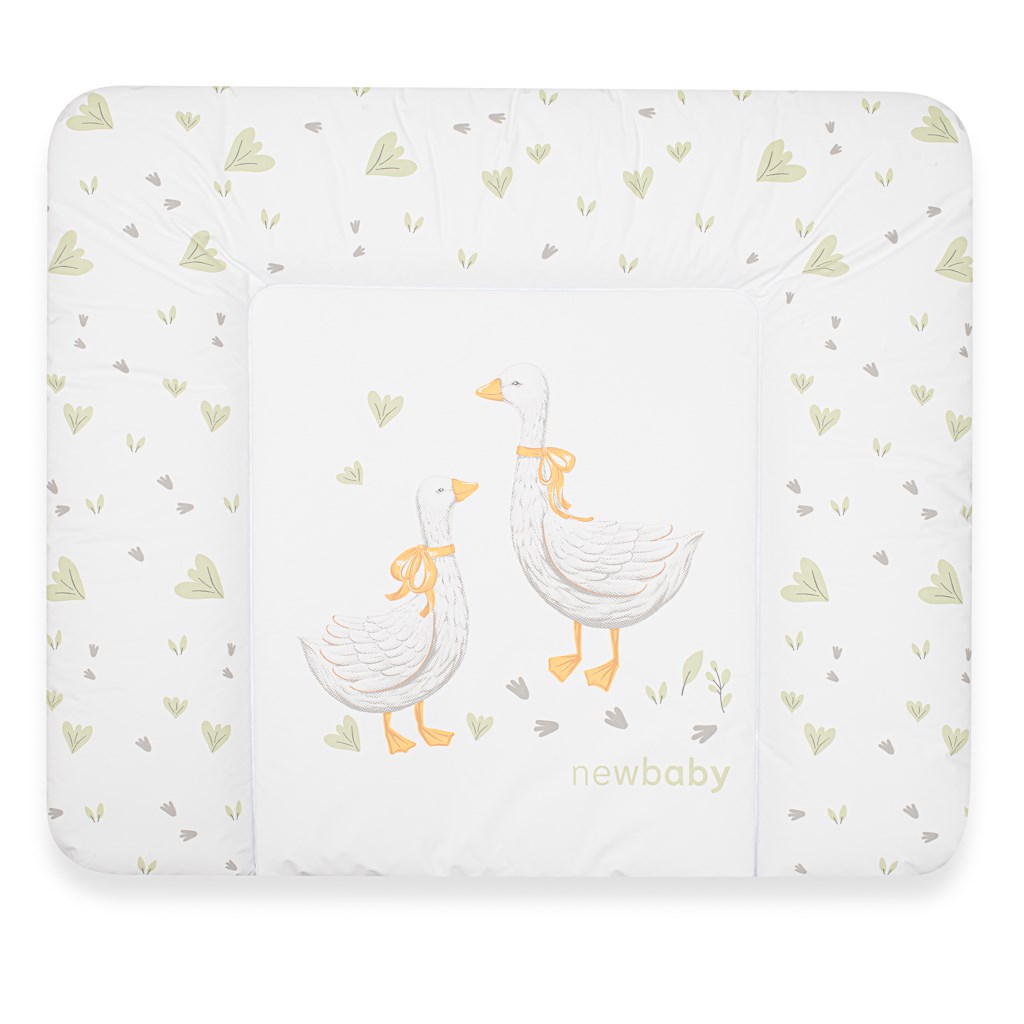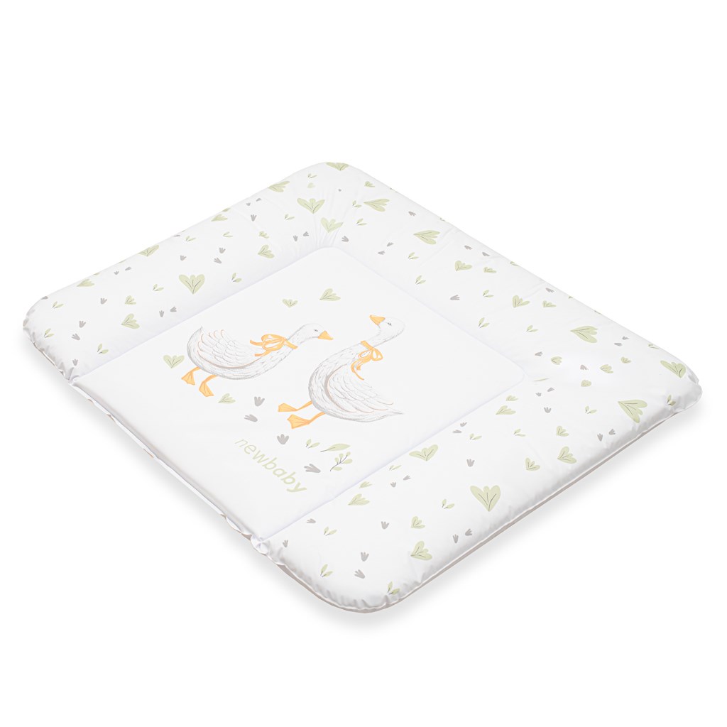 Practical soft changing mat New Baby Geese made of waterproof plastic material. The mat has pleasant pastel colours and is decorated with a picture of a geesee.It is filled with polyester and can be used on a chest of drawers or other place to change your baby.
