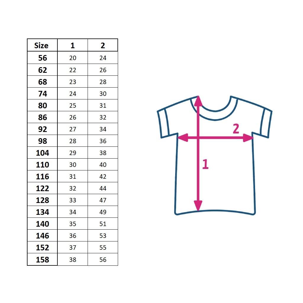 Practical and high-quality short-sleeve cotton shirt New Baby Kindergarten. The cotton shirt is very comfortable, made from high-quality cotton, without buttons, with a gentle hem around the neck. The hem should not press, squeeze, and the shirt should be easy to put on over the head. The shirt is very suitable for everyday children's activities at home and in kindergarten. Composition: 100% cotton. OEKO-TEX STANDARD 100. Size chart - last photo.