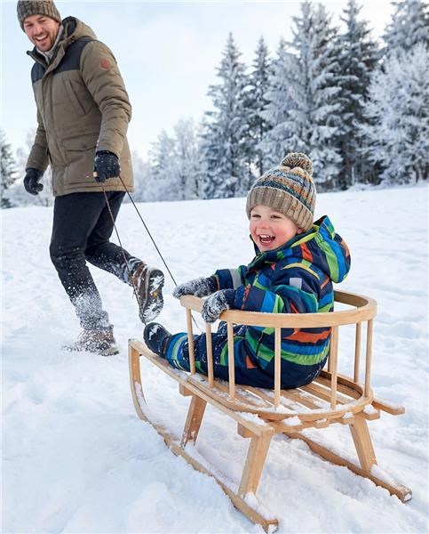 Set includes: sled, backrest, cord with wooden handle. The wood is varnished with an eco-friendly lacquer in a natural colour so that it retains its natural colour and texture.