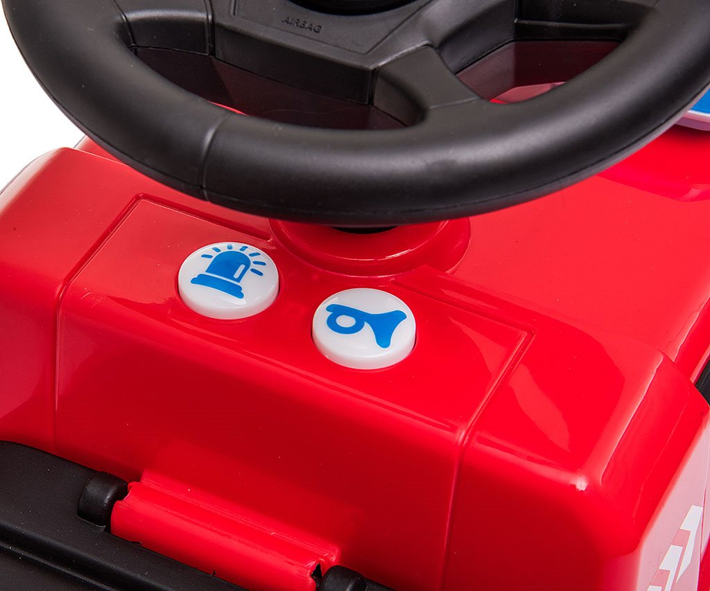 The Milly Mally Mercedes Benz licensed fire truck is a real treat for little drivers. The perfect workmanship and details such as the wheels, lights or body shape attract everyone's attention and will quickly become a favorite toy at home and on walks. The Milly Mally Mercedes Benz children's car is made of high-quality plastic. Your little racer will feel like a real Mercedes on it. Under the steering wheel there are two buttons to turn on the light "tap" and the sound signal. The rider helps to develop the child's motor skills and guarantees a lot of fun and joy.