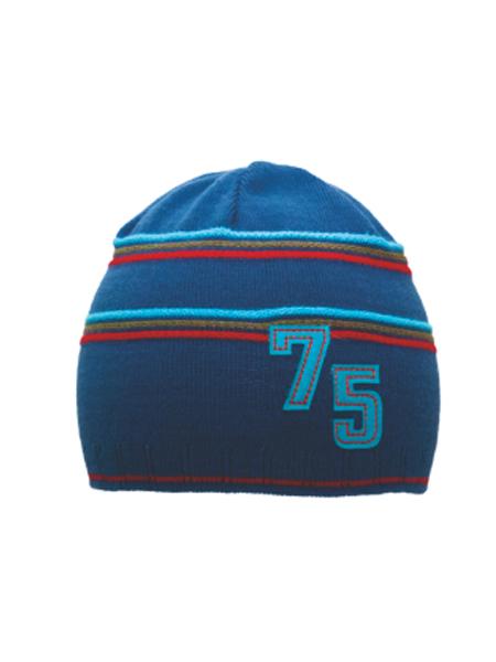 Beautiful baby cap suitable for everyday wear of your children. The classic cut of the soft knitted cap adapts to your child's head thanks to the elastic material. The cap is monochrome with stripes and the number 75. Very comfortable material. Composition 100% acrylic. Size 52-54.Also suitable for older children.