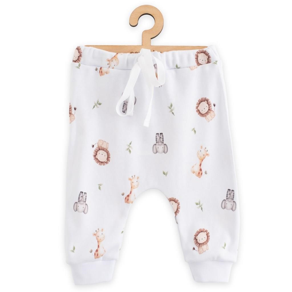 The baby pants are fully printed with a creative and playful children's pattern. For easy dressing, they have a soft, non-restrictive elastic waistband and a sewn-in decorative tie. The legs are finished with wider cuffs.