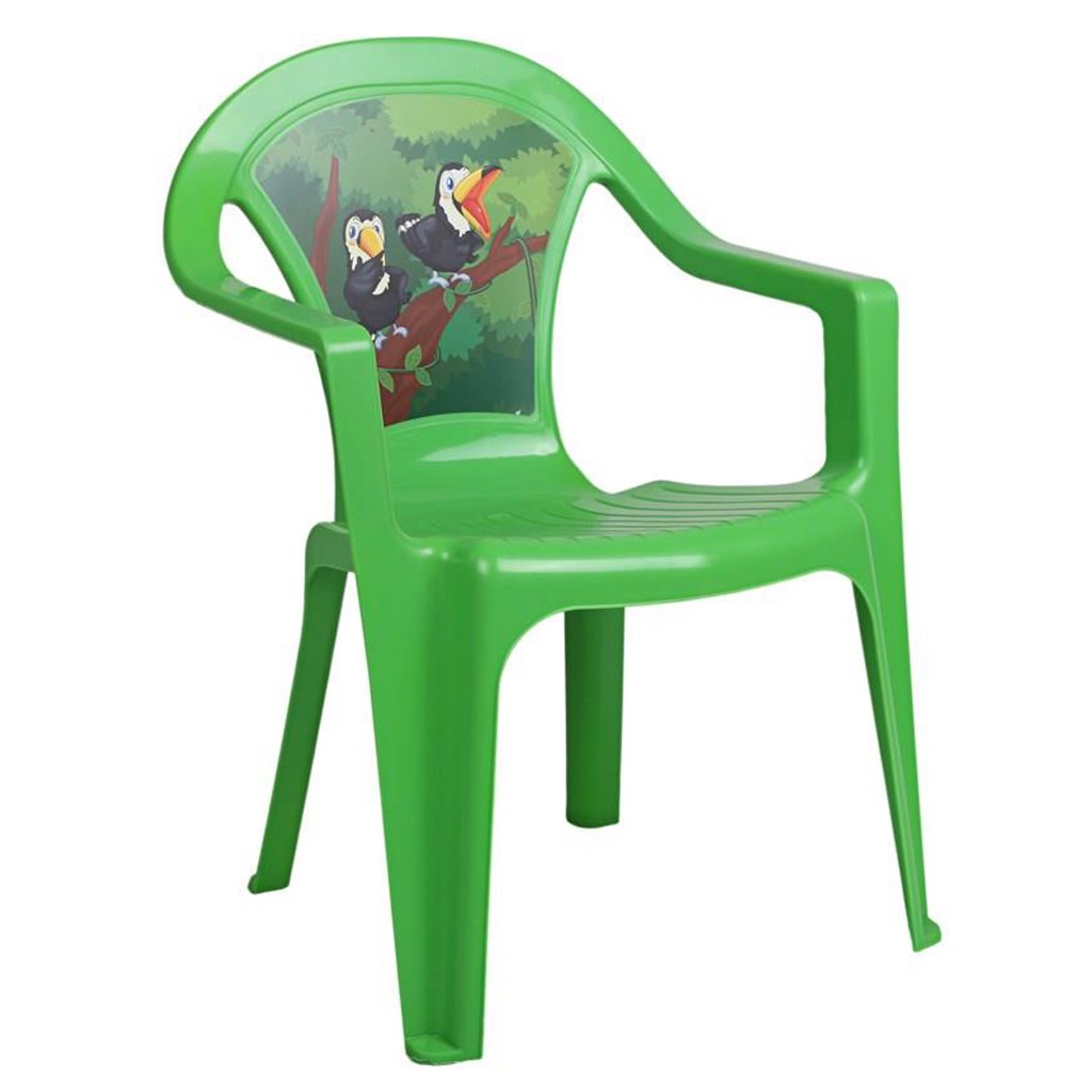 Children's plastic garden chair in cheerful colours with a picture - a perfectly sophisticated children's version of garden furniture for adults. The furniture is designed for small users. Children love to sit on chairs sized just for them, the colourful design also captivates the child. Thanks to its dimensions, it is also suitable for small terraces or balconies. Also suitable for the children's room. Dimensions: approx. 37x39x51 cm, load capacity 40 kg. Pictures vary according to the current offer.