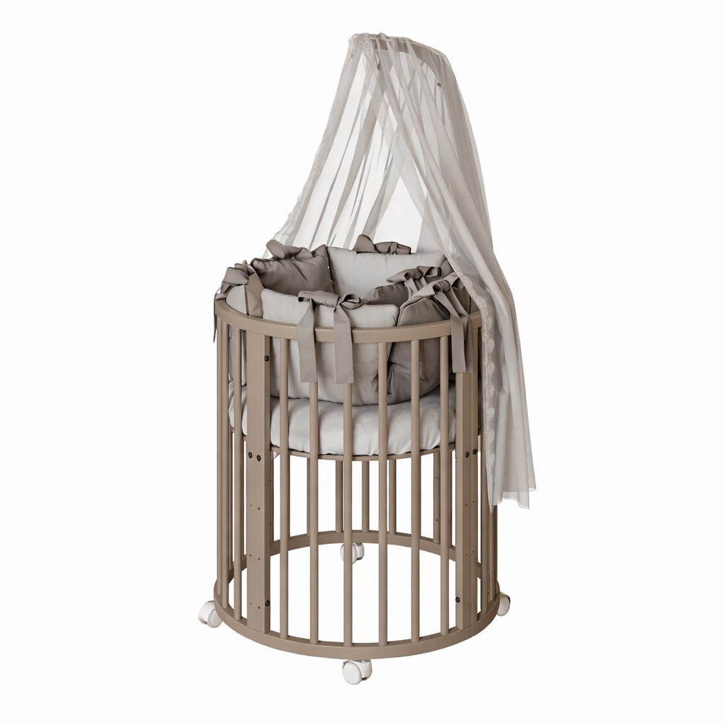 Our 3-in-1 crib combines functionality, aesthetics, and safety. Its rounded shape looks great in any interior, and the solid wooden frame ensures long-term durability.