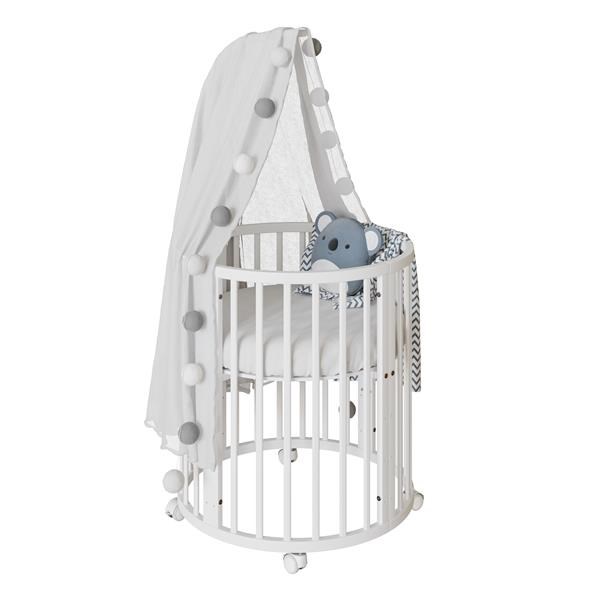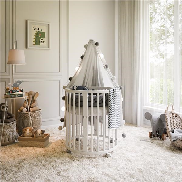Our 3-in-1 crib combines functionality, aesthetics, and safety. Its rounded shape looks great in any interior, and the solid wooden frame ensures long-term durability.