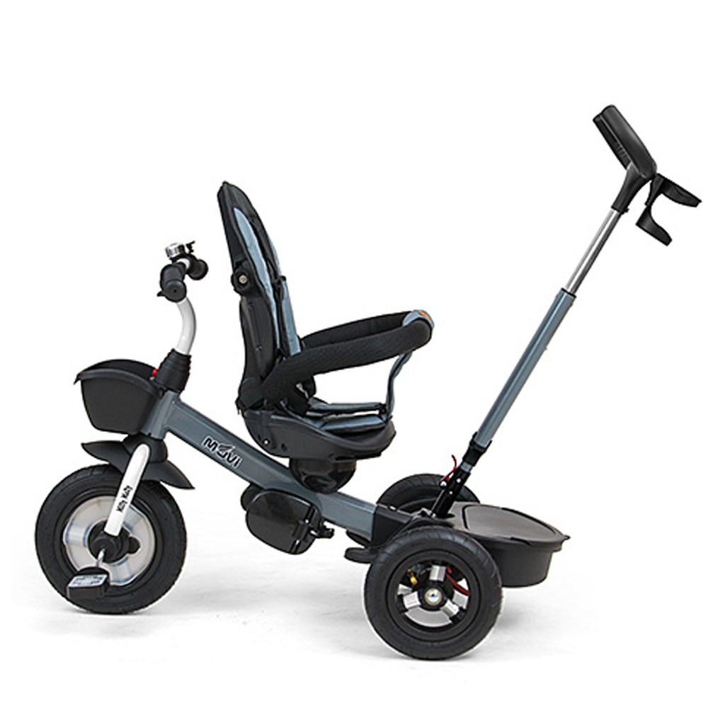 It is made of high quality and durable materials. It has a modern design, a comfortable and ergonomically shaped seat that swivels 360 degrees, allowing the child to travel in or against the direction of travel. Comfort and safety during the ride is ensured by a barrier, three-point seat belts, comfortable footrests or large inflatable wheels that absorb shocks and provide good grip. Both child and parent can control the trike with the adjustable push handle. When the guide bar, the folding canopy that protects from the sun or other components are removed, it will serve as a tricycle. The tricycle can also be used as an alternative to a golf buggy. There is a handy storage basket for toys or baby's necessities.