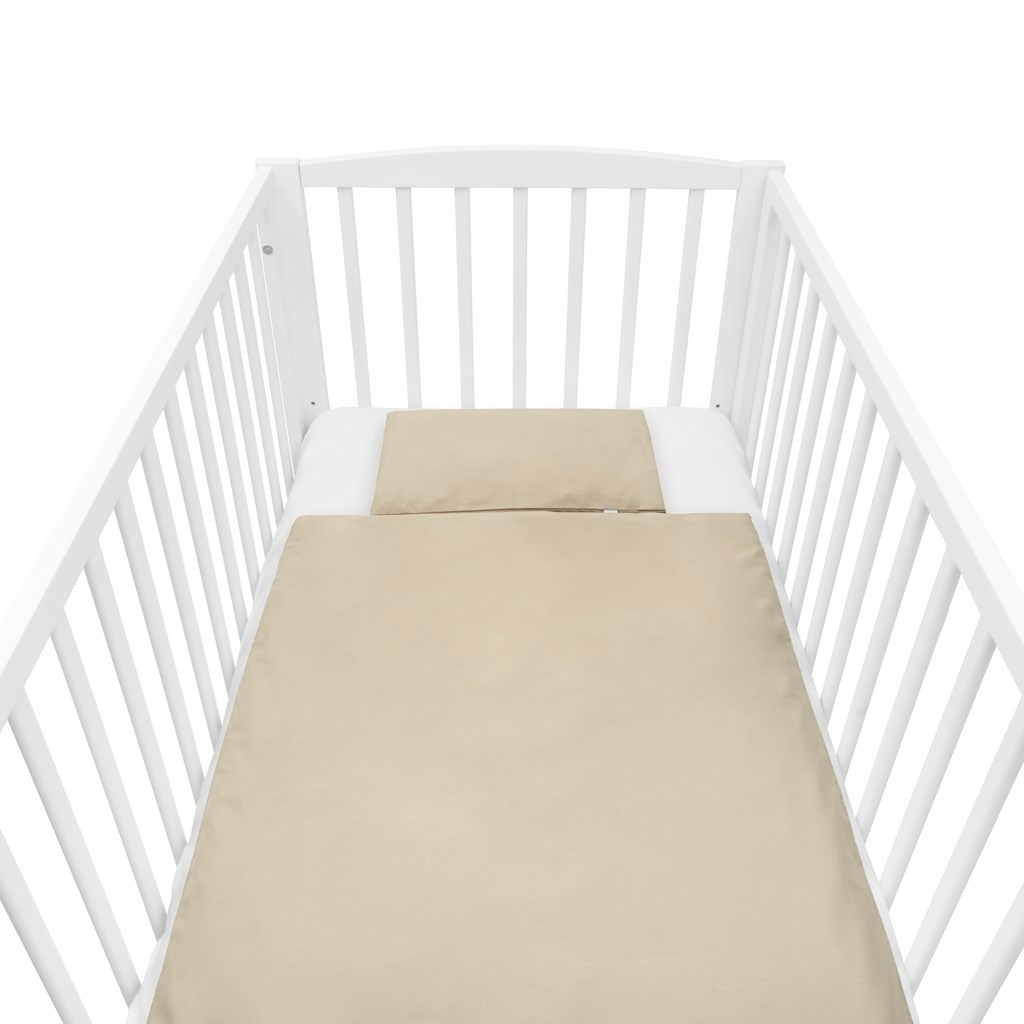 Beautiful cotton crib set New Baby. The set includes a pillow and a duvet with a print. The set is filled with anti-allergic fibre and is made of high quality cotton. The cotton set will luxuriously and gently caress and warm your baby's skin. Dimensions: pillow: approx. 60x40 cm, duvet: approx. 90x120 cm.