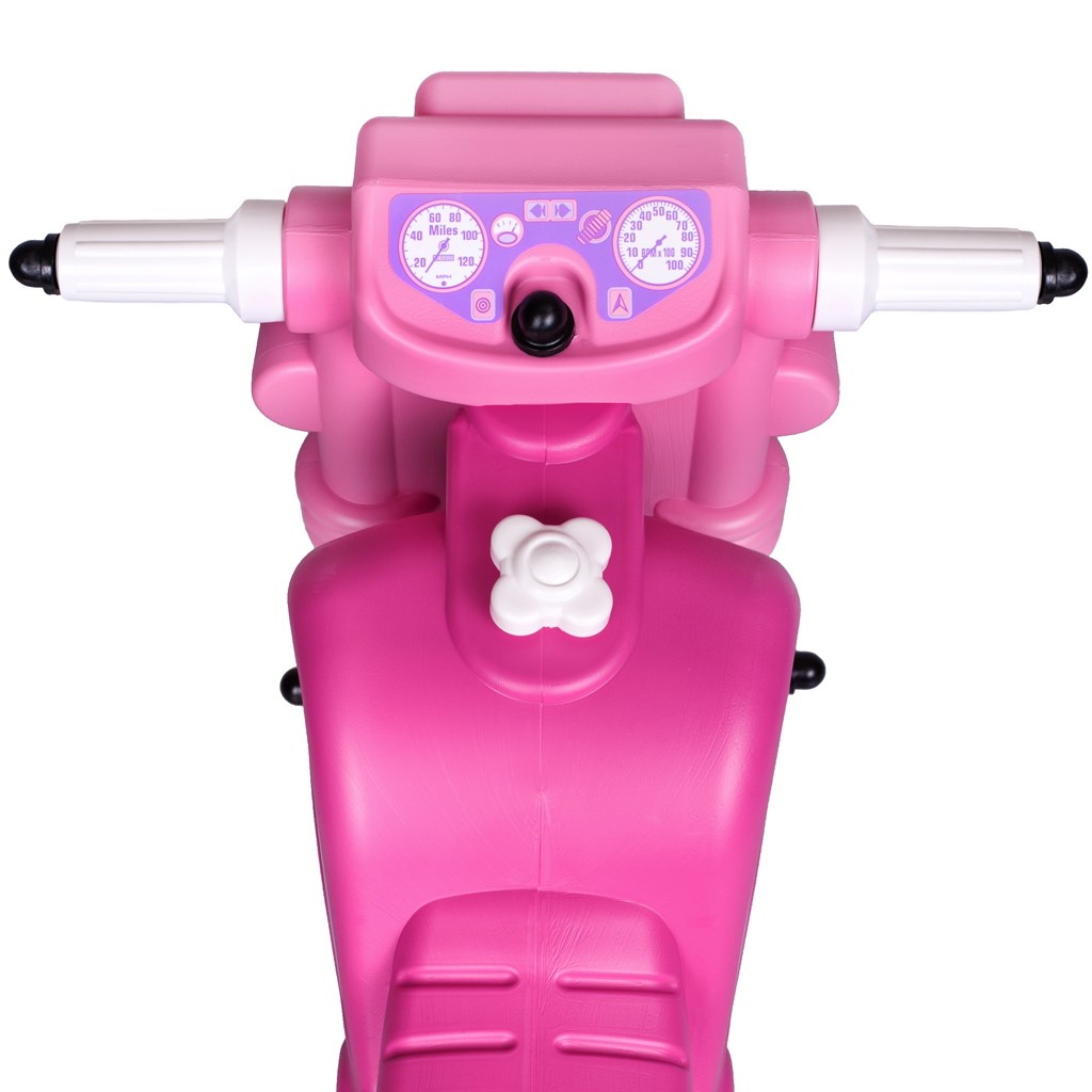 Children's motorcycle-shaped scooter with a cheerful and colourful design. The scooter is made in a purple-pink combination with pictures of hearts, so it is especially suitable for little girls. Made of high quality and durable plastic material. Dimensions: 59x35x45 cm. Designed for children from 3 years old. Maximum load: 50 kg.