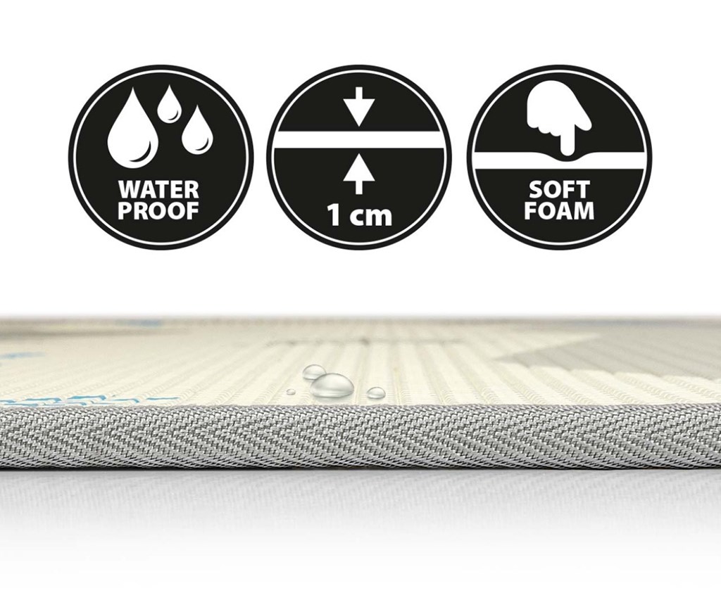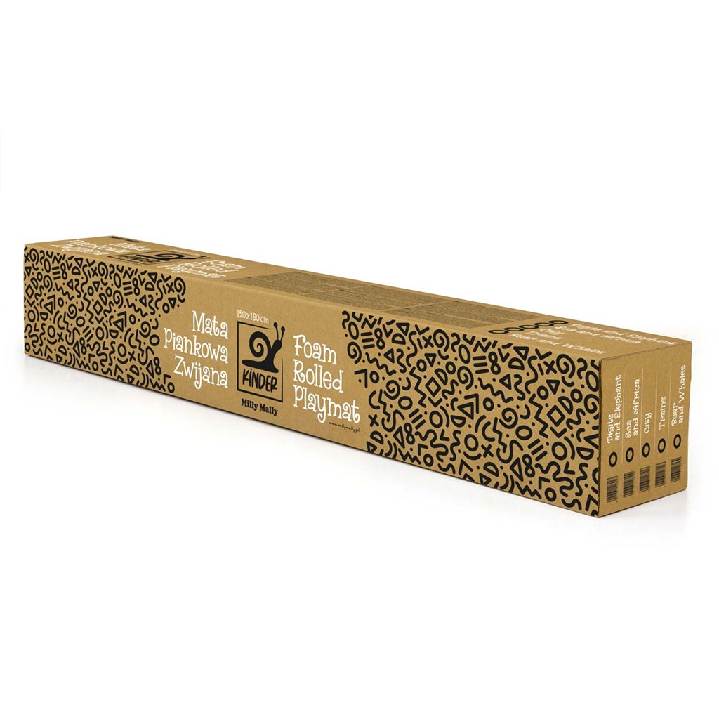 The creative and colorful patterns of the mat encourage activity, especially in the early stages of development. The flat surface of the foam mat allows your child to model a stable torso, turn their head naturally and freely, practice rotations, lean, put the right weight on their feet and sit stably and safely. The KINDER roll-up foam mat is a safe and comfortable place to play. The product provides excellent insulation from cold floors and, thanks to the waterproof surface, is easy to clean and is an ideal addition to any room. Its high flexibility ensures excellent shock absorption in the event of a fall. It can also be used outdoors on a smooth surface. Our mat is also ideal for travel.