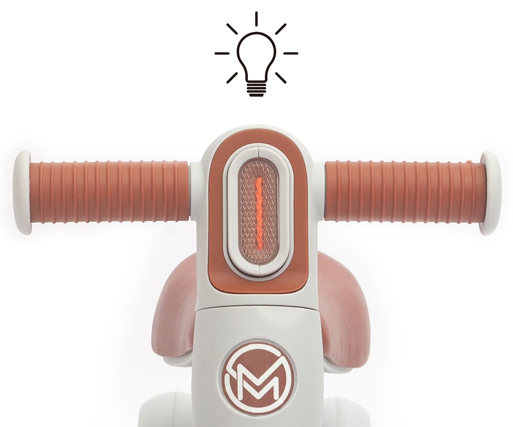 The LED light built into the handlebars (2× AAA/LR03 – not included) adds a playful effect and motivates children to move. Suitable for indoor and outdoor use on flat surfaces.